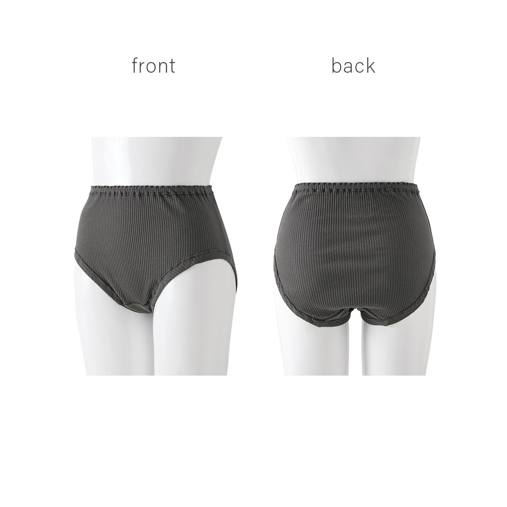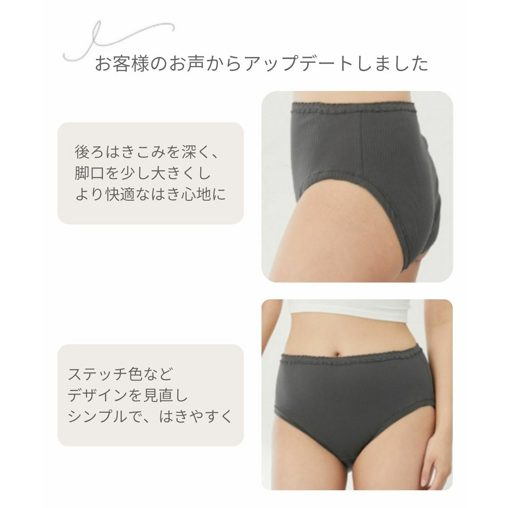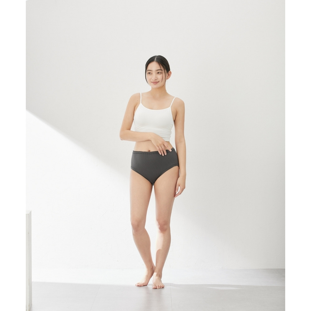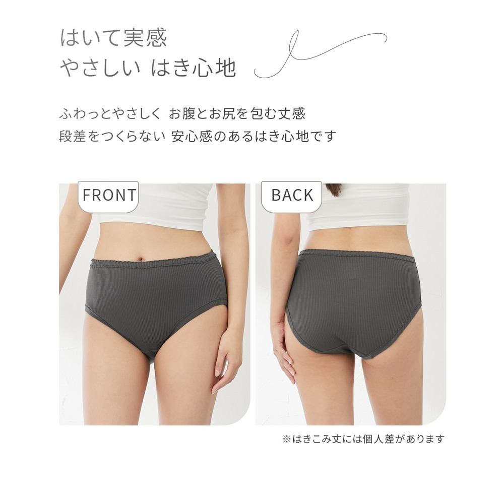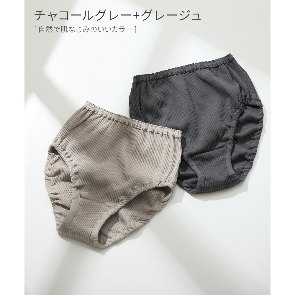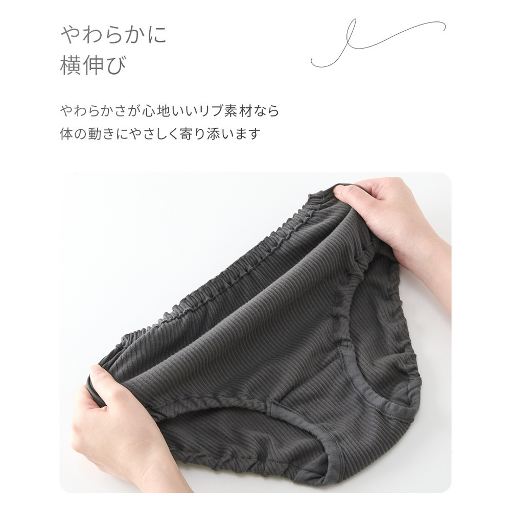 【綿と暮らす】オーガニックコットン100%リブ 縫い目が肌にあたらなくてゴムが取替できる深ばき丈ショーツ2枚組