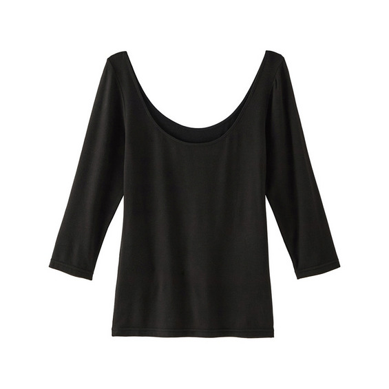 胸元が広く開いたニットの下もこの1枚で暖かく