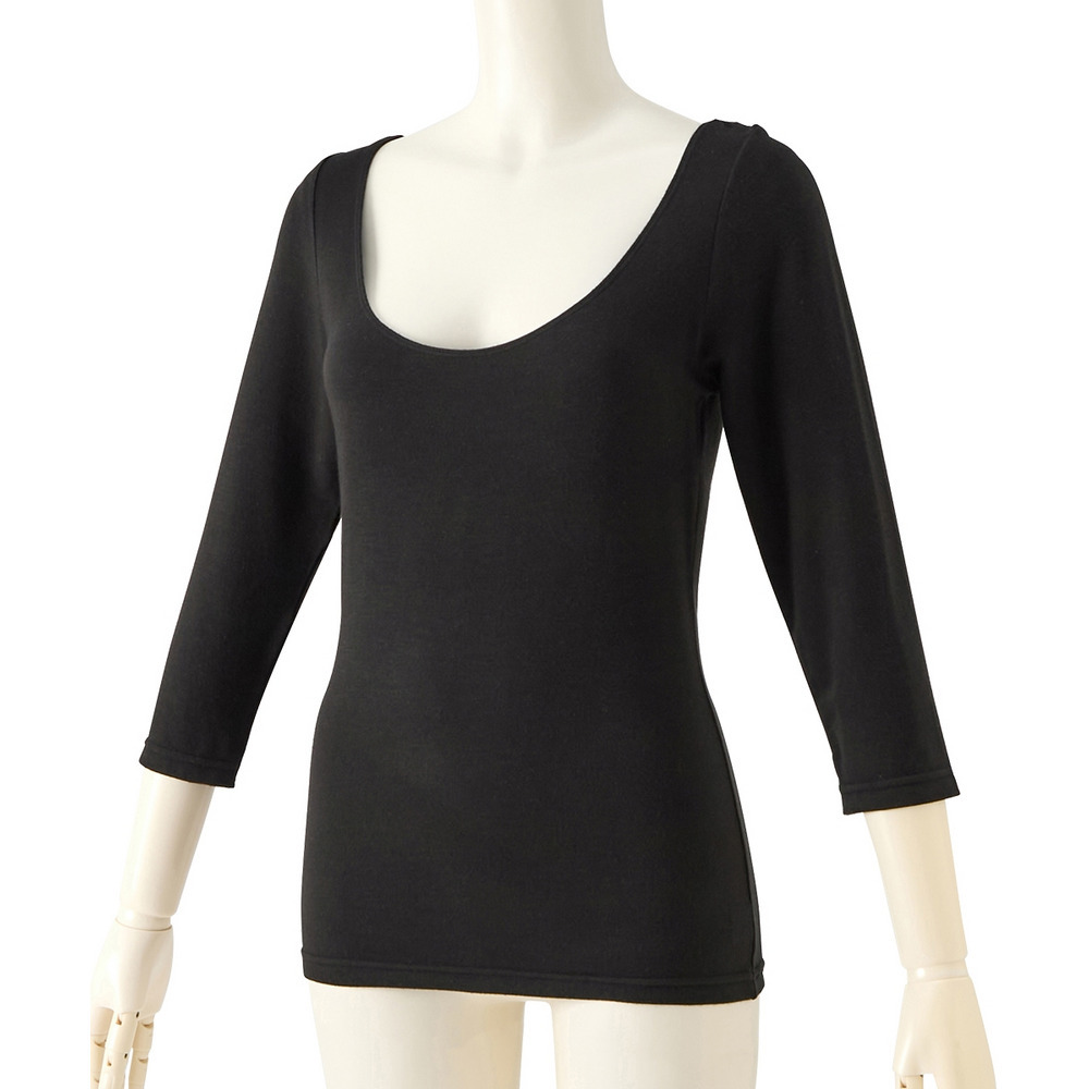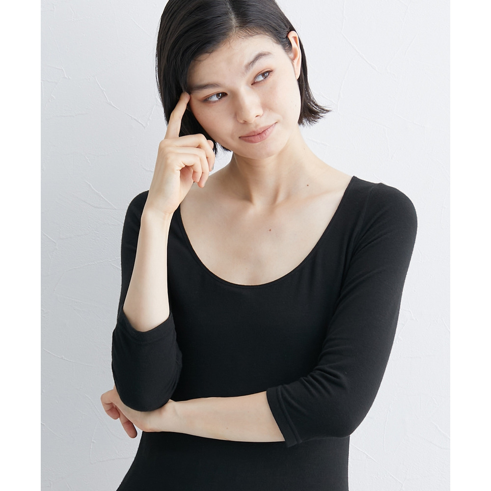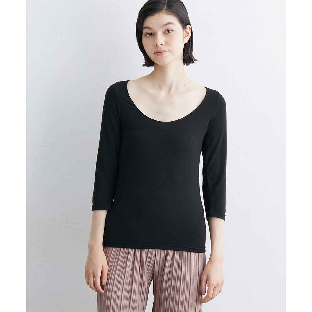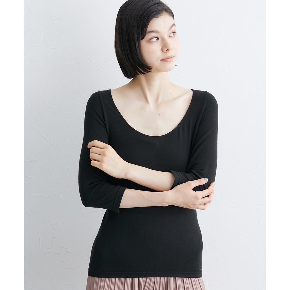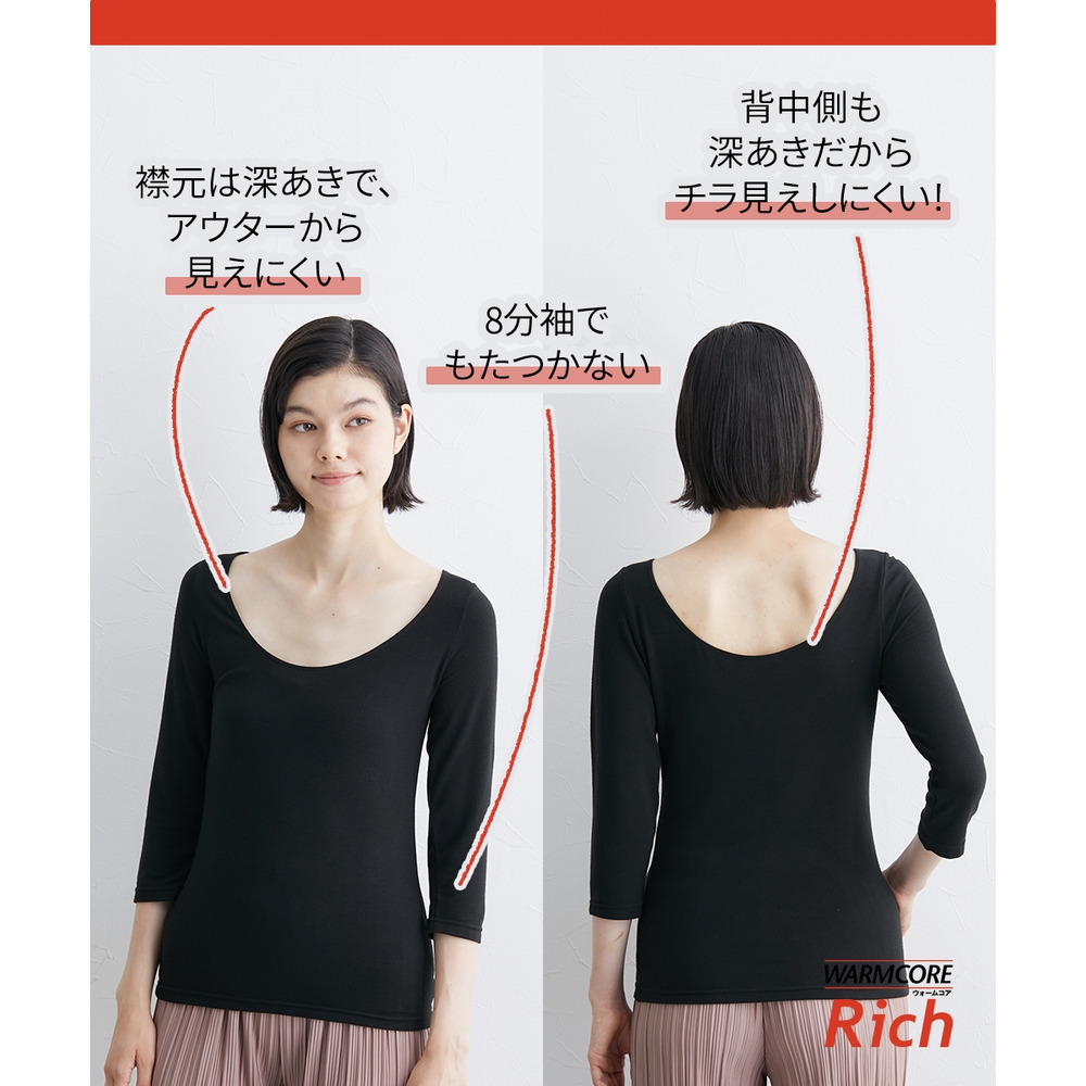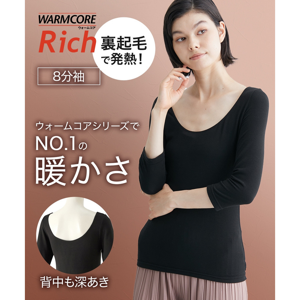 ウォームコアリッチ 裏起毛襟ぐり広め8分袖インナー(吸湿発熱・UVカット)