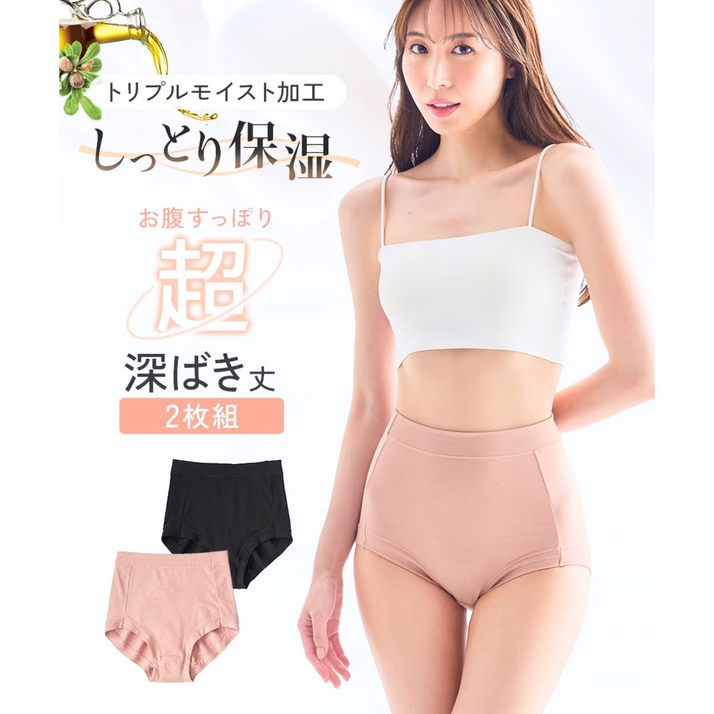 • おなかすっぽり超深ばき丈 トリプルモイストしっとりなめらかショーツ2枚組(保湿・ecoプラ)1