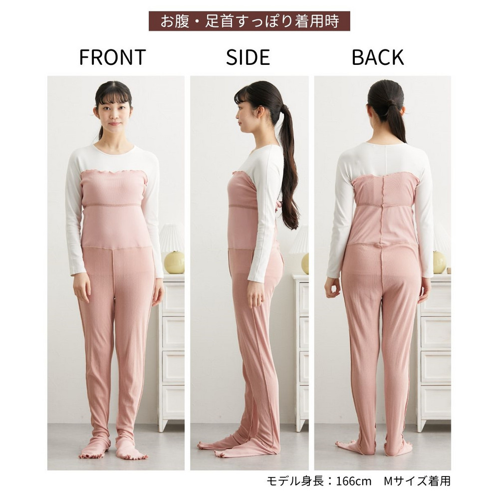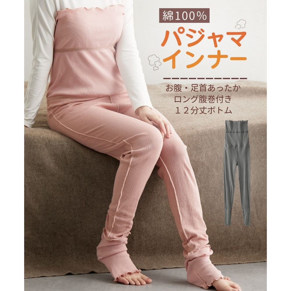 綿100%パジャマインナー お腹・足首あったかロング腹巻付き12分丈ボトム