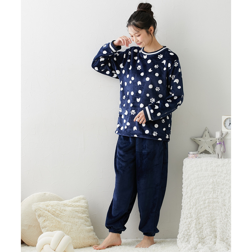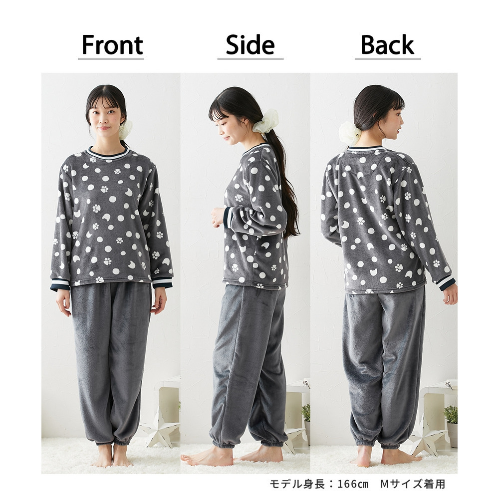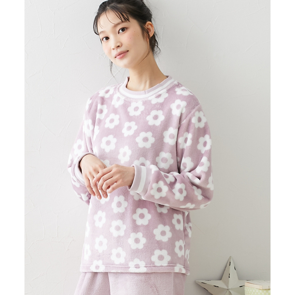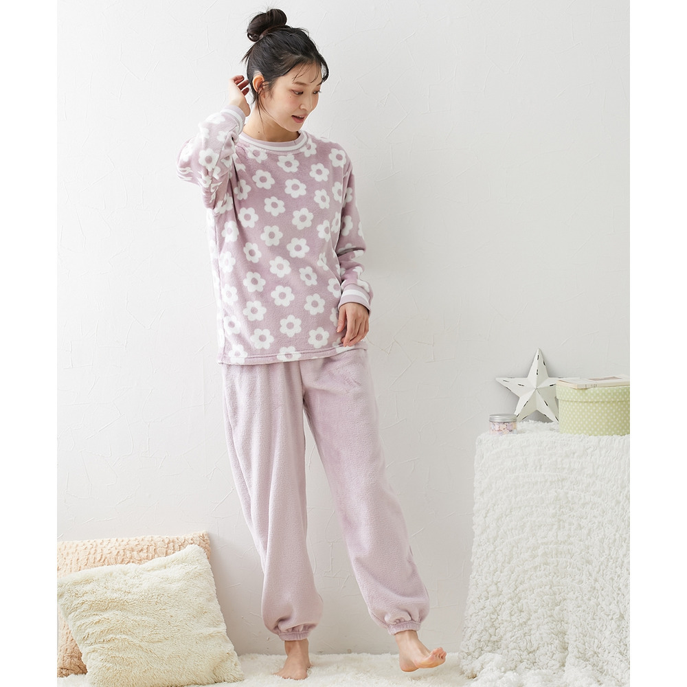 ふわぬくプレミアムフランネル総柄プリントルームウェア上下セット