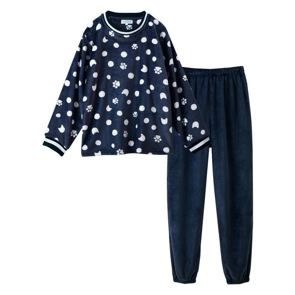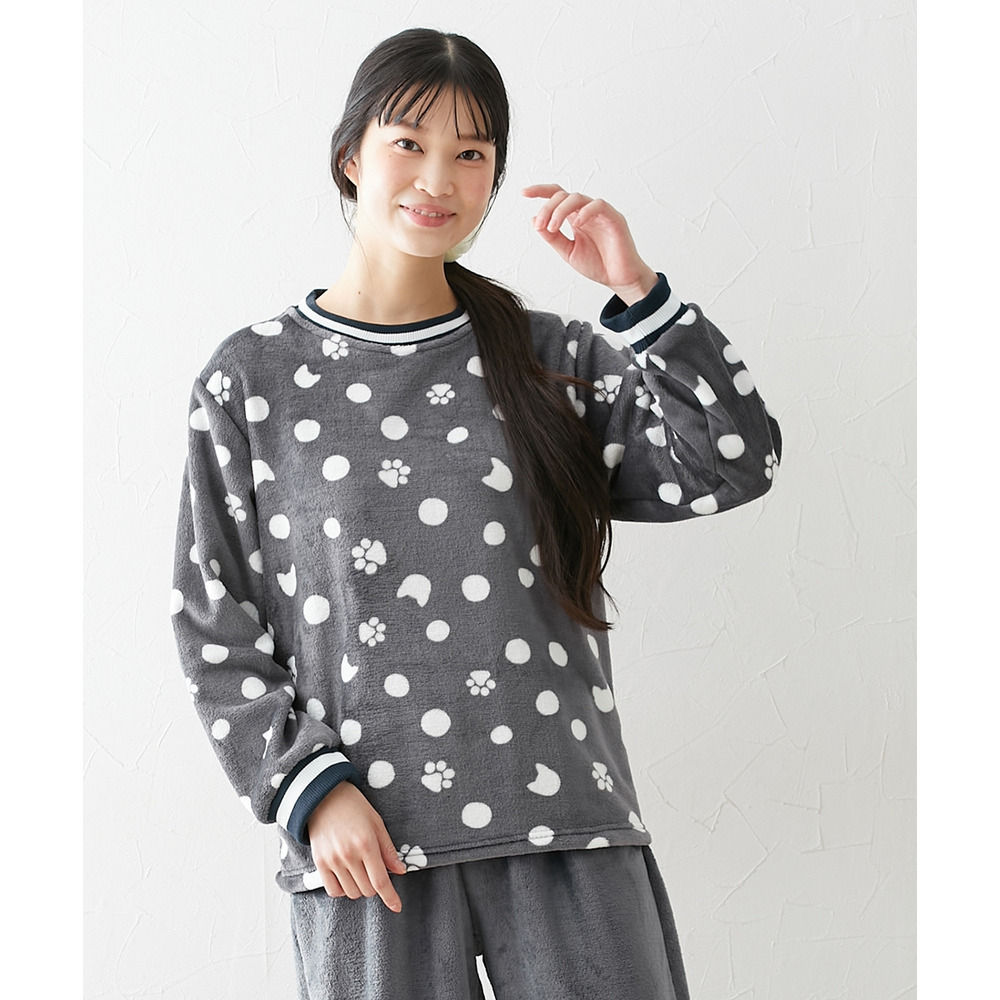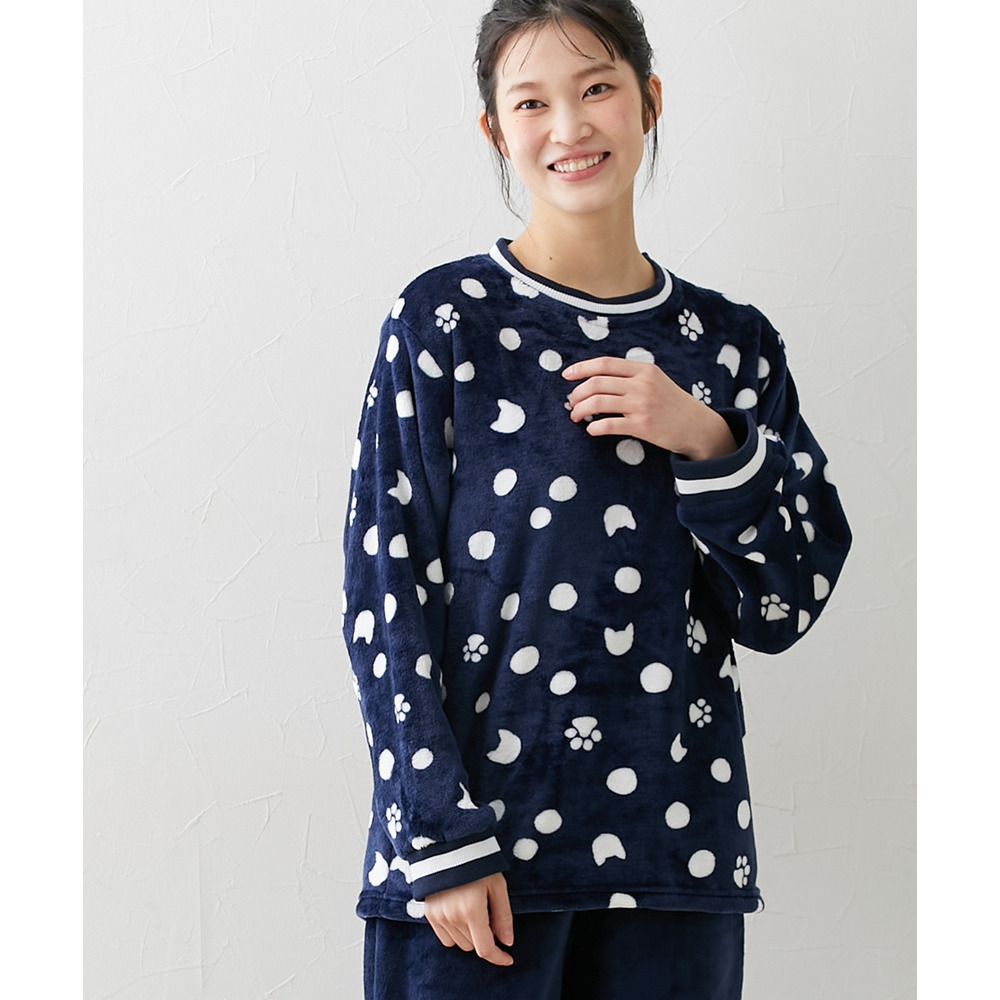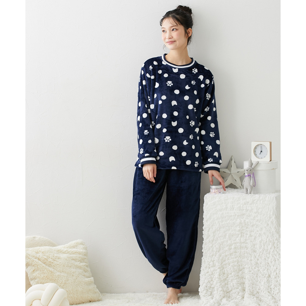 ふわぬくプレミアムフランネル総柄プリントルームウェア上下セット