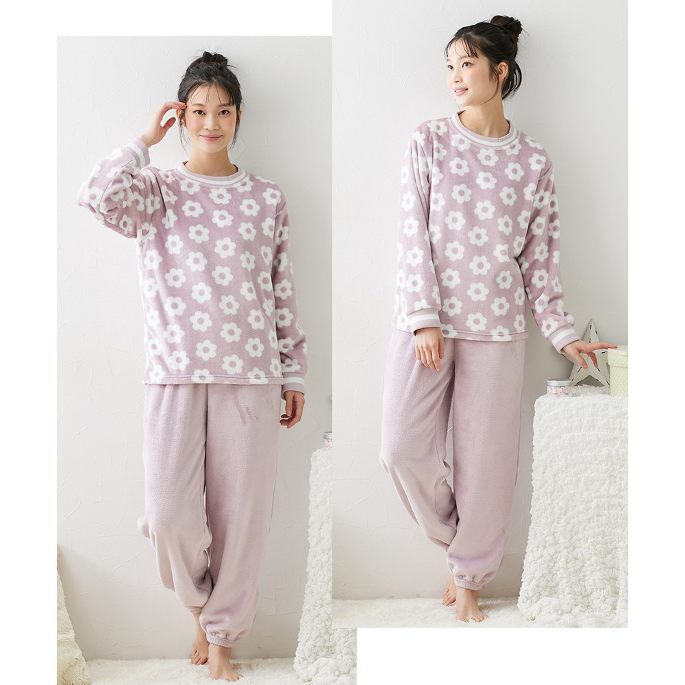 • ふわぬくプレミアムフランネル総柄プリントルームウェア上下セット20