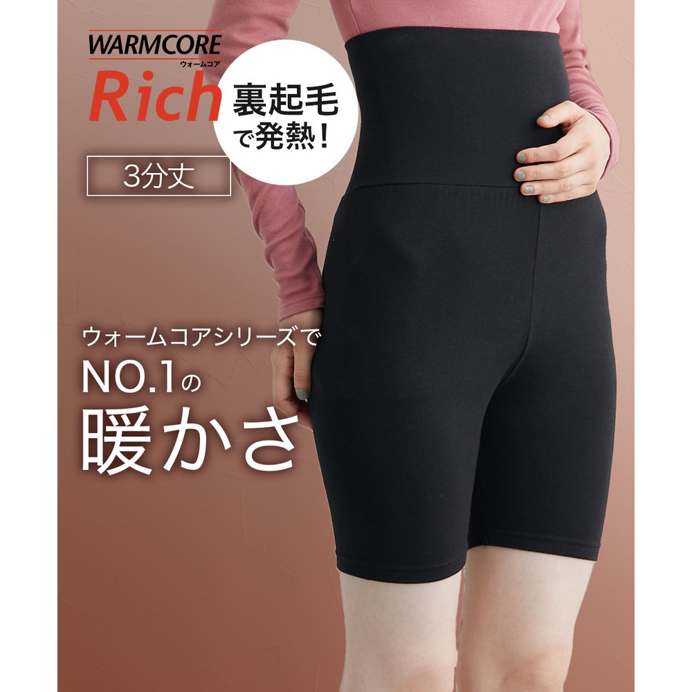 ウォームコアリッチ 裏起毛腹巻付き3分丈オーバーパンツ(吸湿発熱・UVカット)