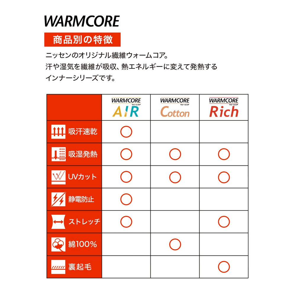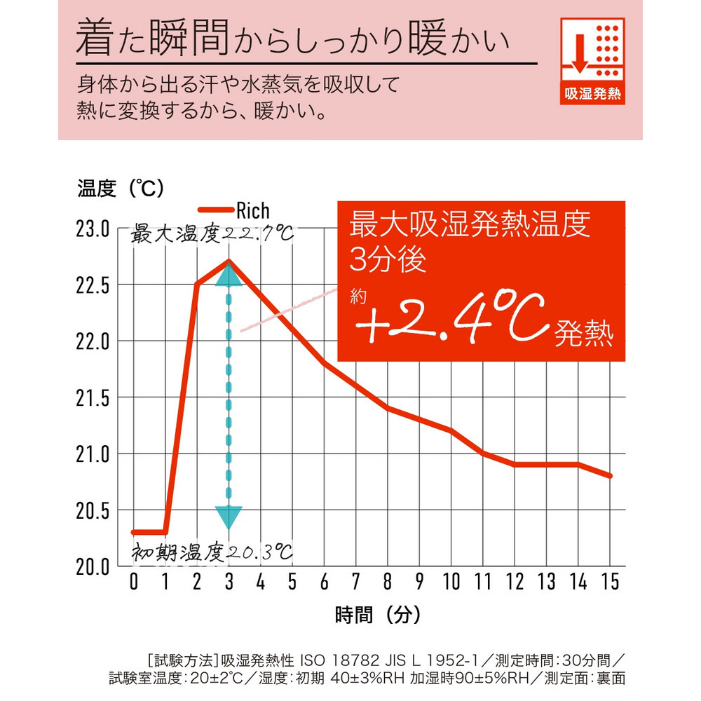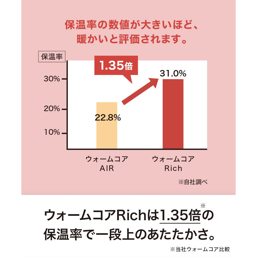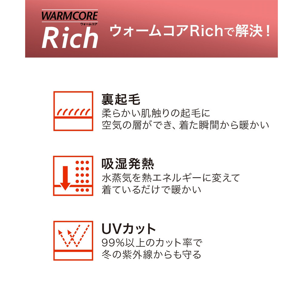 【ウォームコアRICH】は、発熱機能に加え、生地自体の暖かさをプラス。