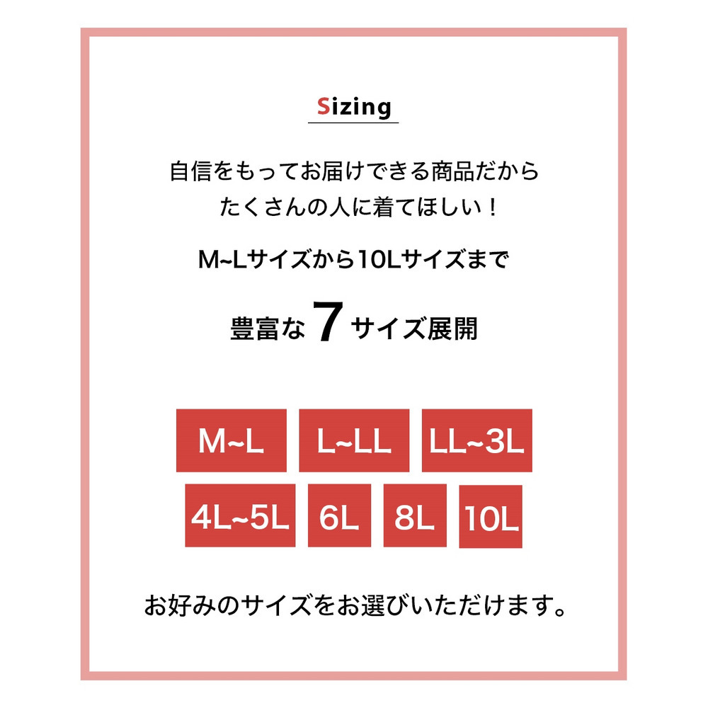 | サイズ表記 | LL~3L | L~LL | 4L~5L | 6L | 8L | 10L |