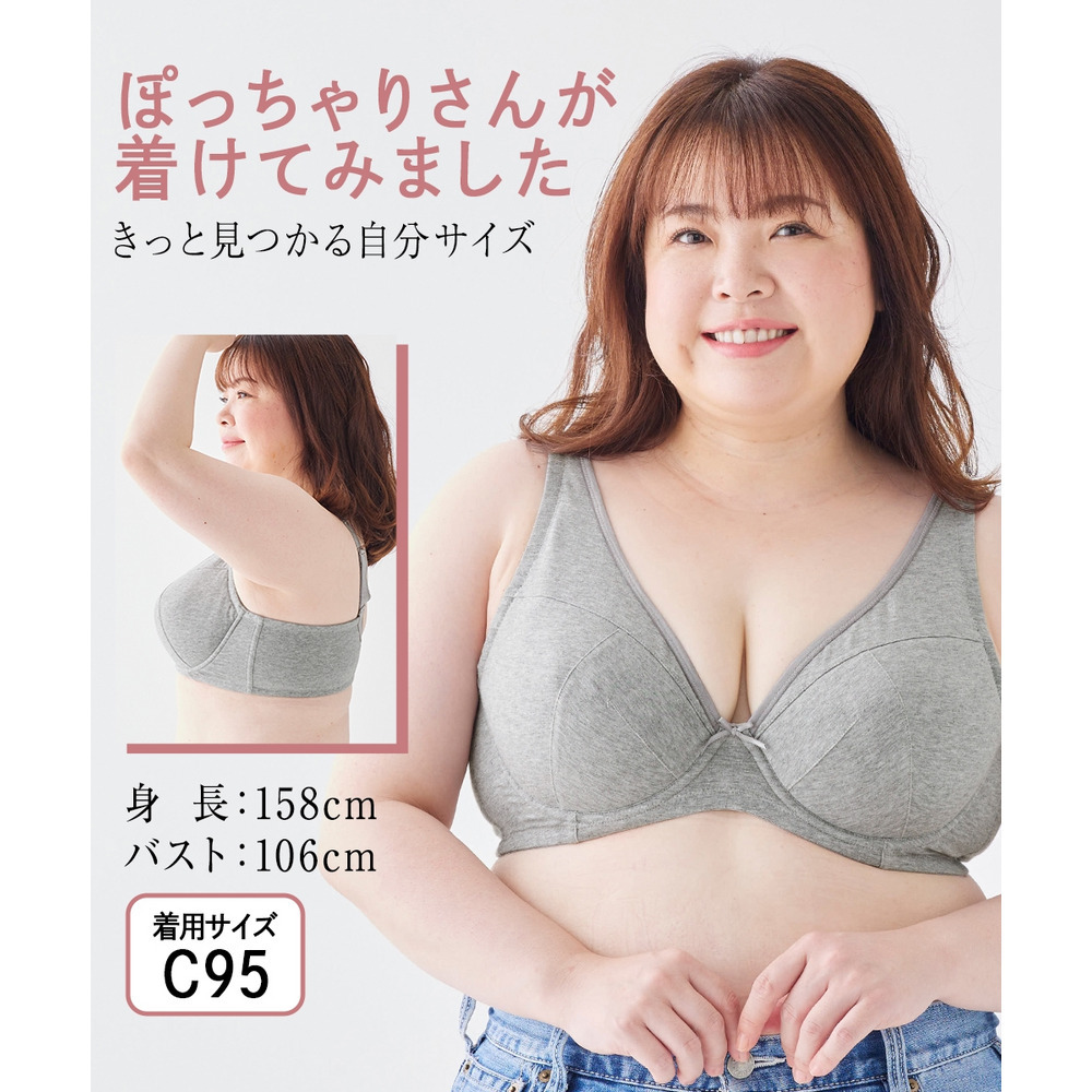 | 素材 | 品質=カーキ杢:綿・ポリエステル・その他 その他カラー:綿・ポリウレタン フルカップ ワイヤー入り 後ろホックDEFアンダー70~80 2段3列 その他3段3列 パッドなし ボーンなし |