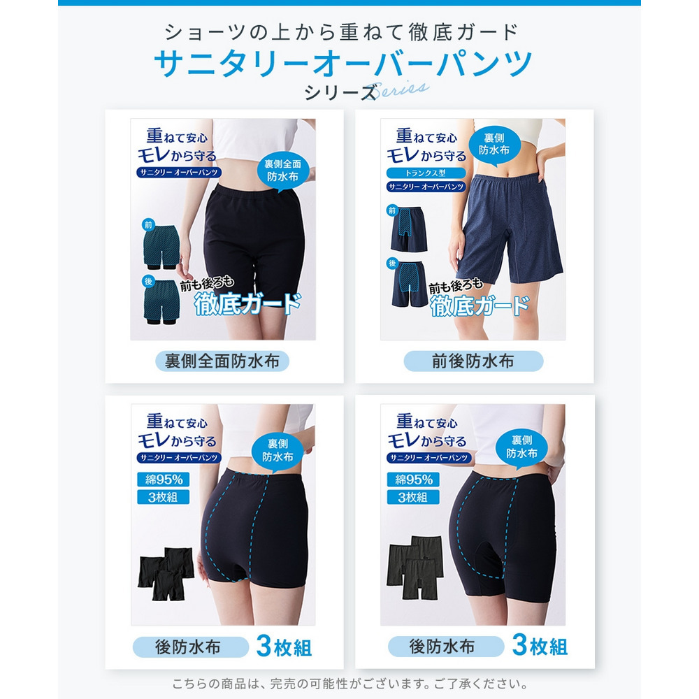 ■◇■多い日に、夜の寝る時に、サニタリーショーツの上から重ねばきで安心できるサニタリー用のオーバーパンツ■◇■