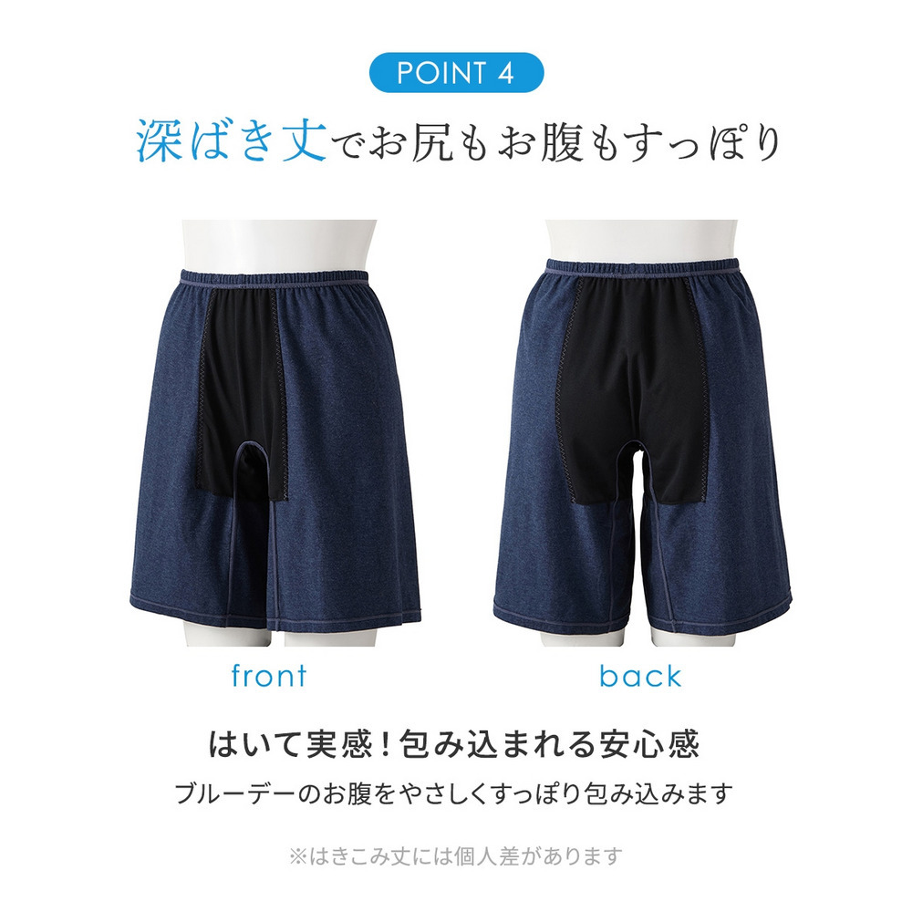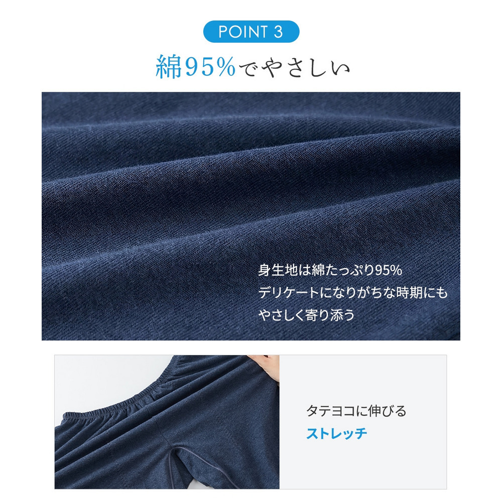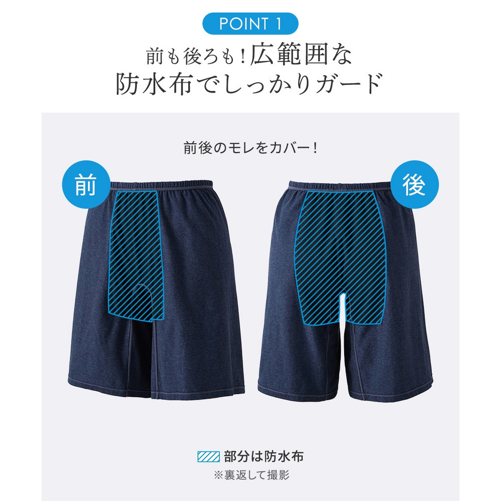 綿混ストレッチ くつろぎトランクス深ばき丈サニタリーオーバーパンツ(日本製防水布 抗菌防臭加工・ムレにくい)
