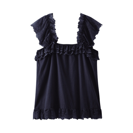 綿100%天竺 フリルレースキャミソール