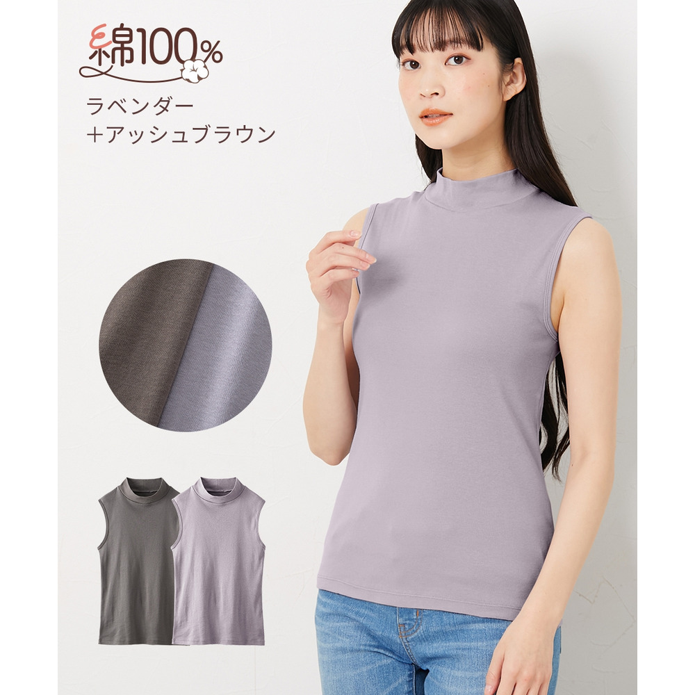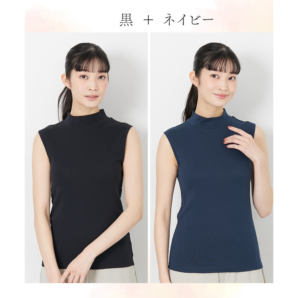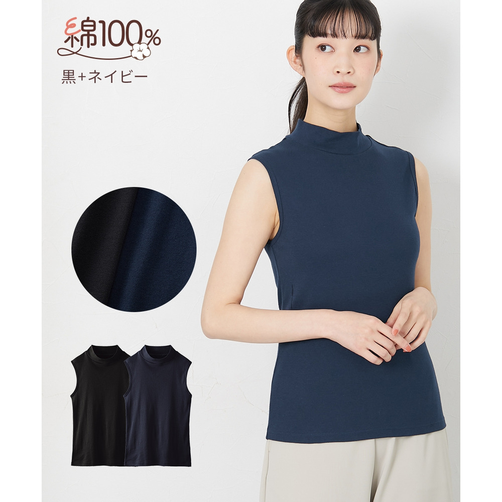 綿100%ハイネックノースリーブ2枚組