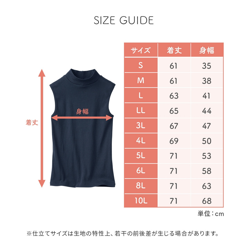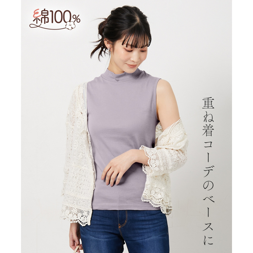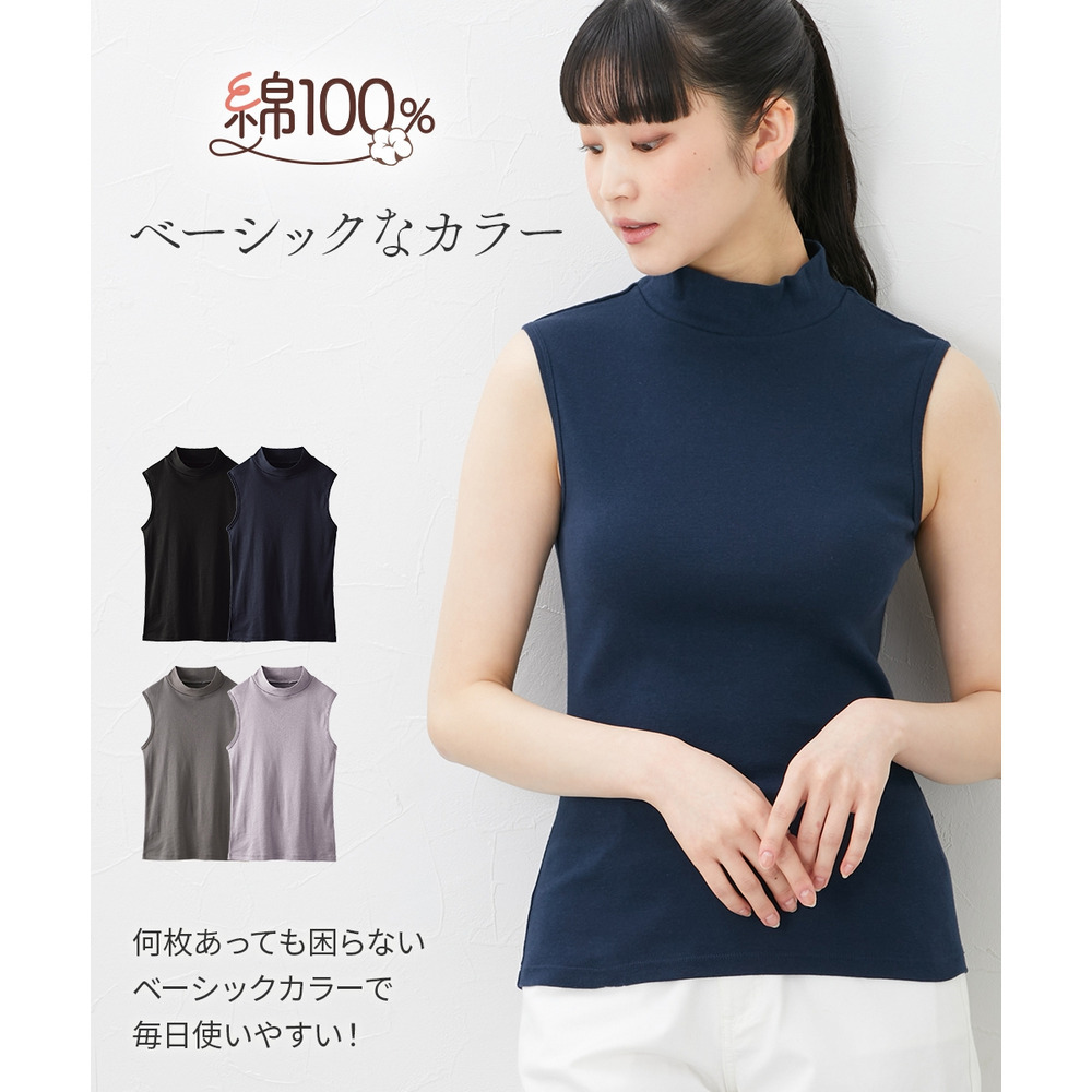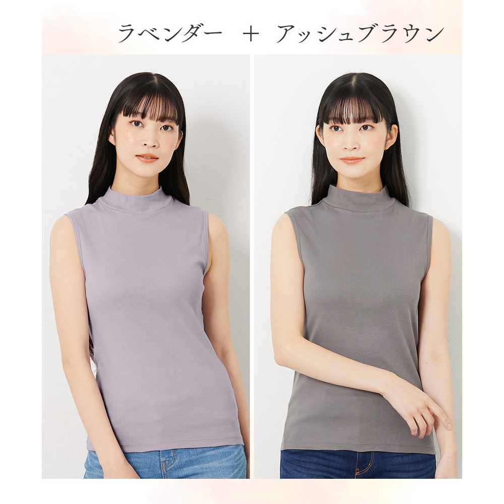 綿100%ハイネックノースリーブ2枚組