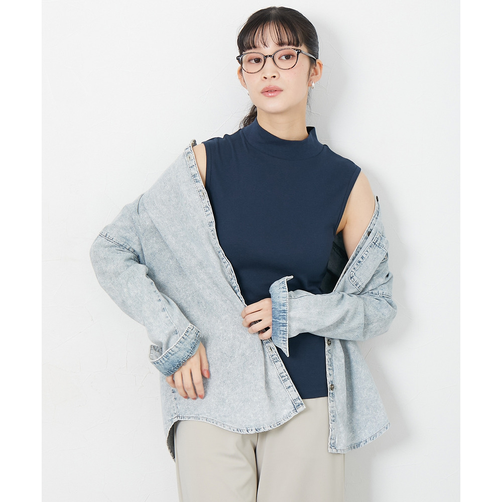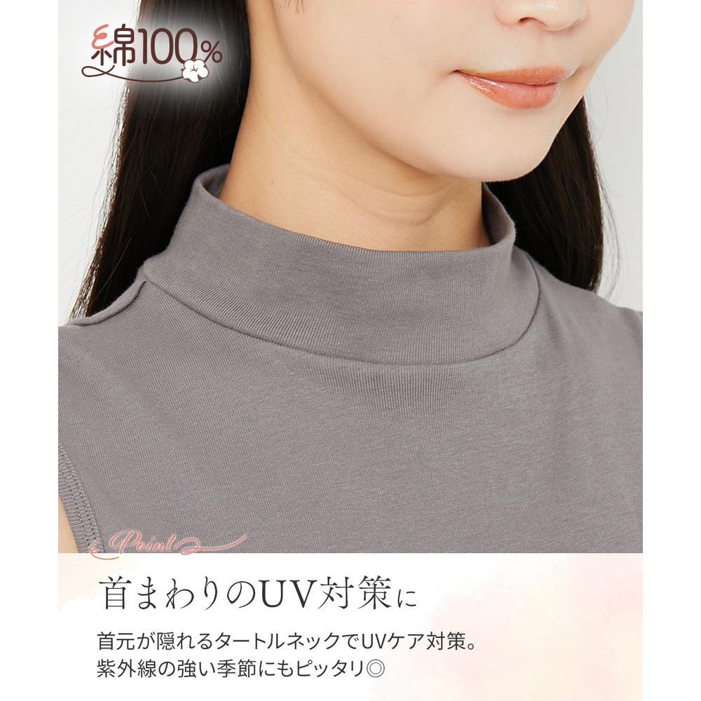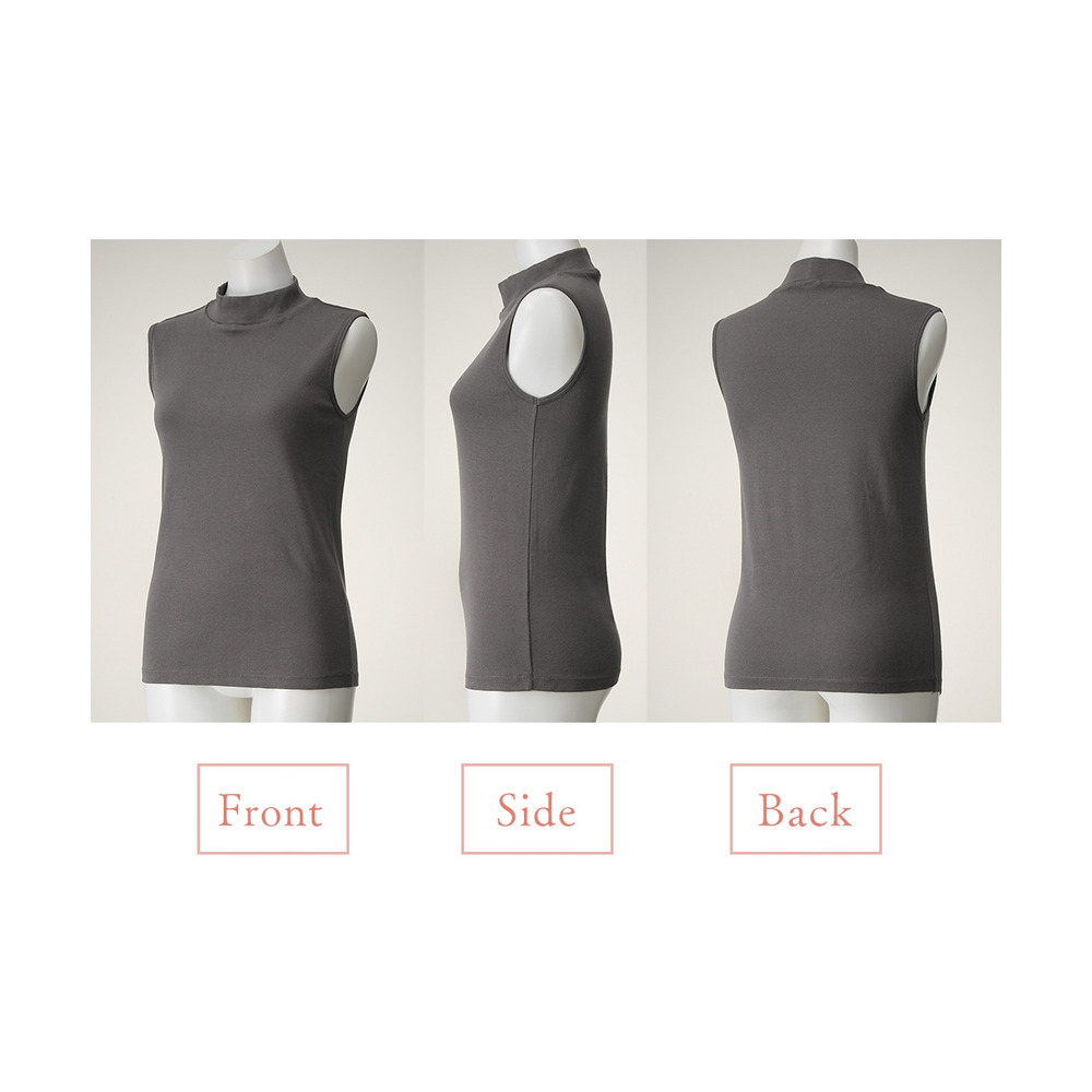 ベーシックなデザインのハイネックノースリーブインナー。