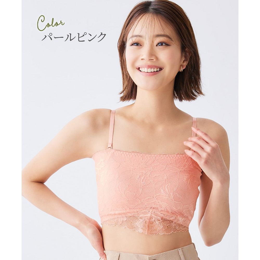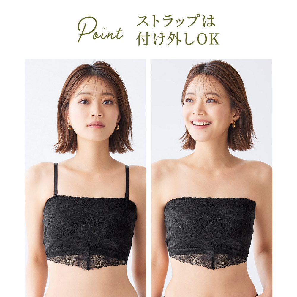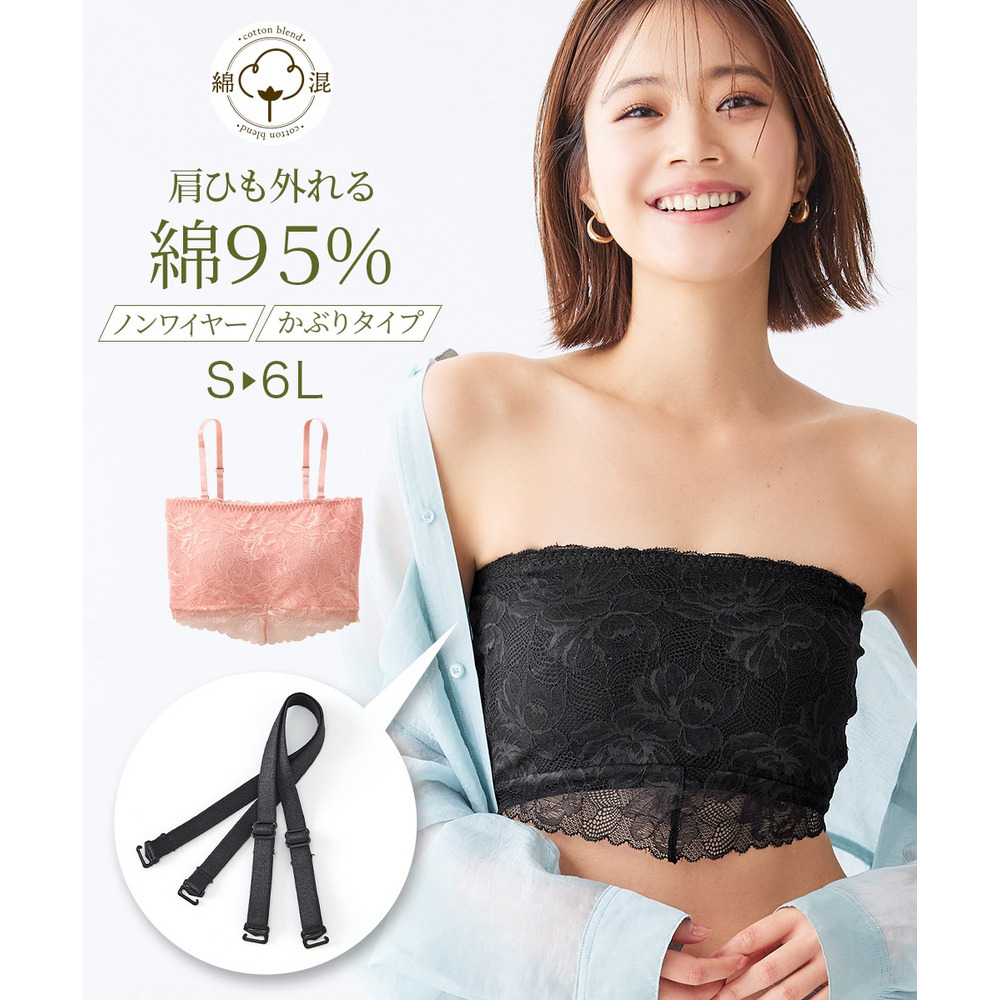 綿混 ストラップ取り外しできるレーシーチューブトップ