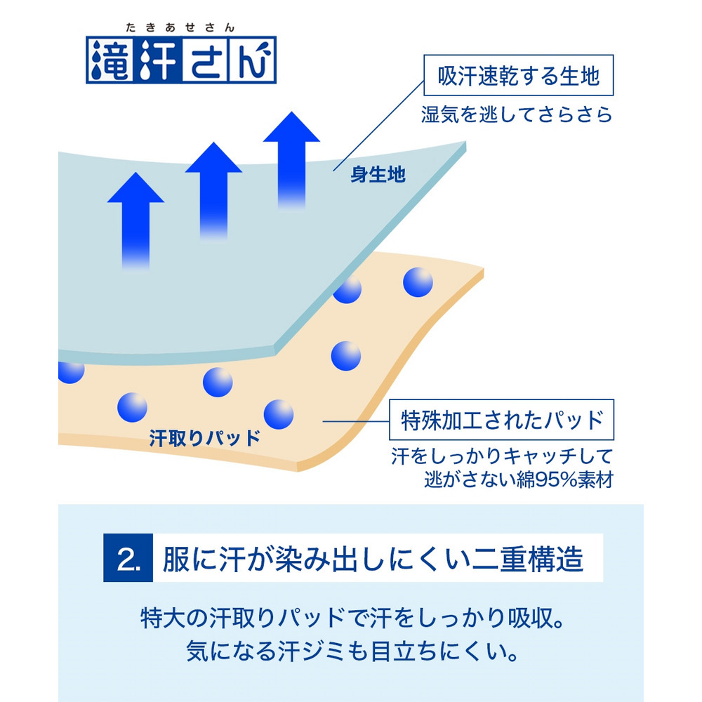滝汗さん どっさり汗も素早く吸収汗取りパッド付【1枚ばきOK】