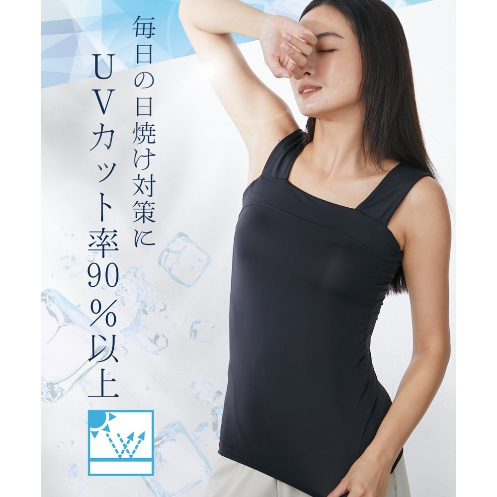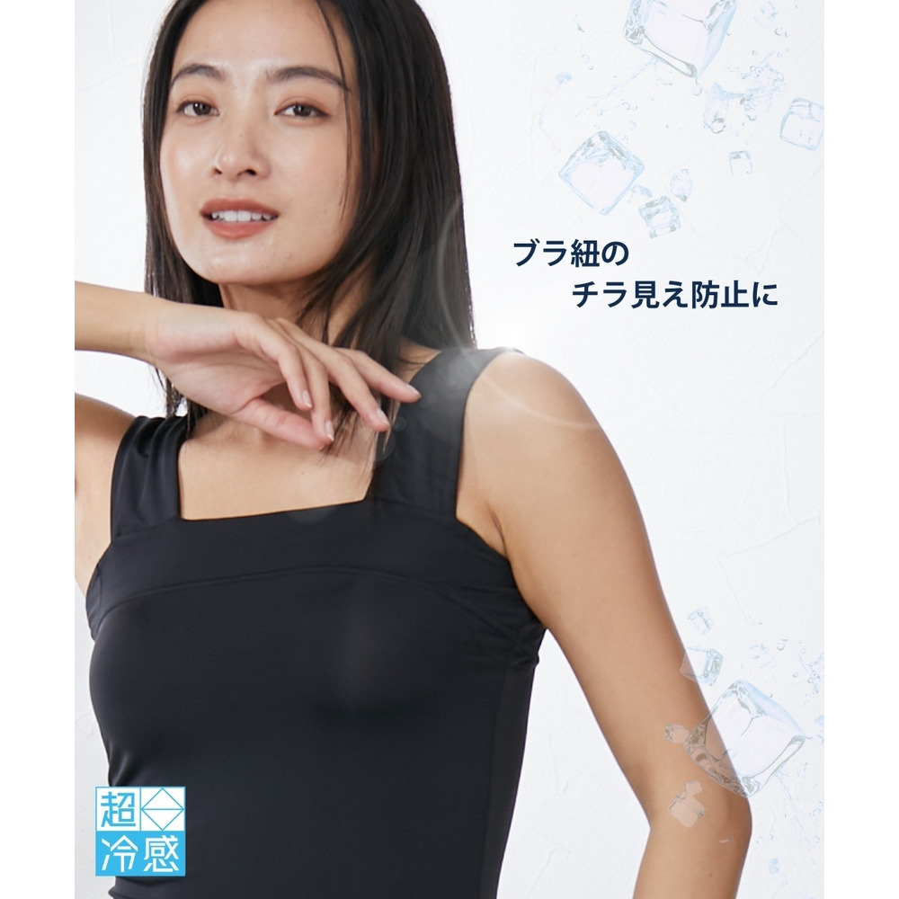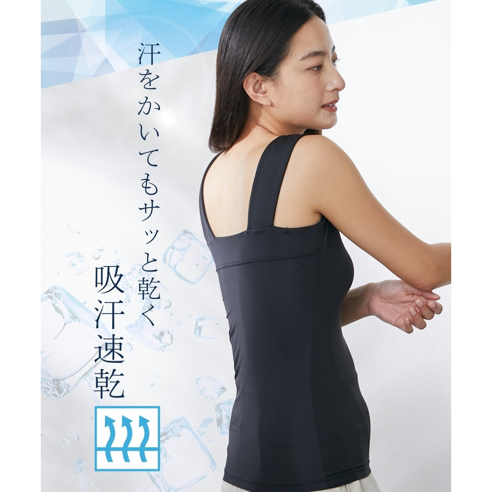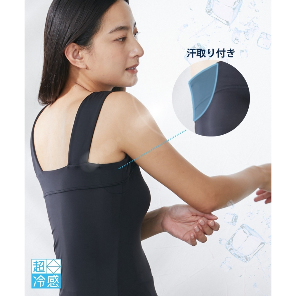 超冷感 汗取りパッド付チラ見え防止チューブトップ風タンクトップ(接触冷感・吸汗速乾・UVカット)