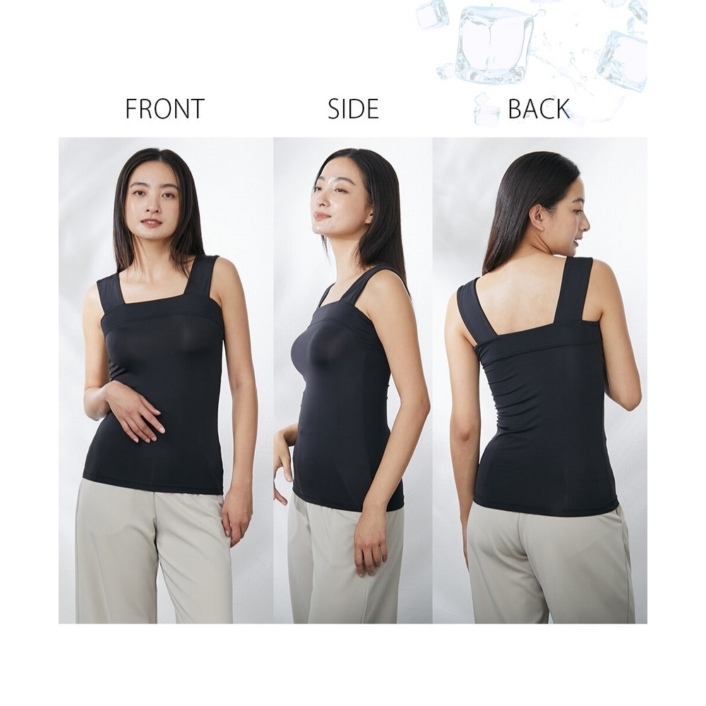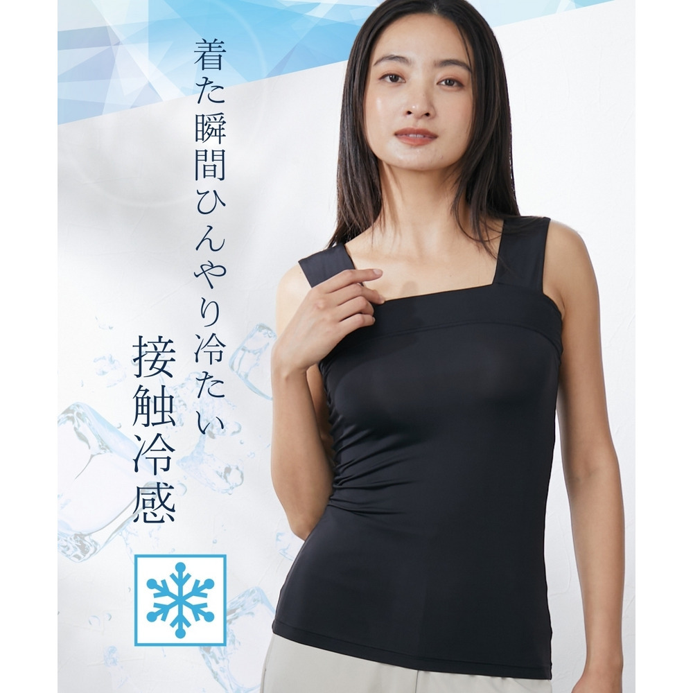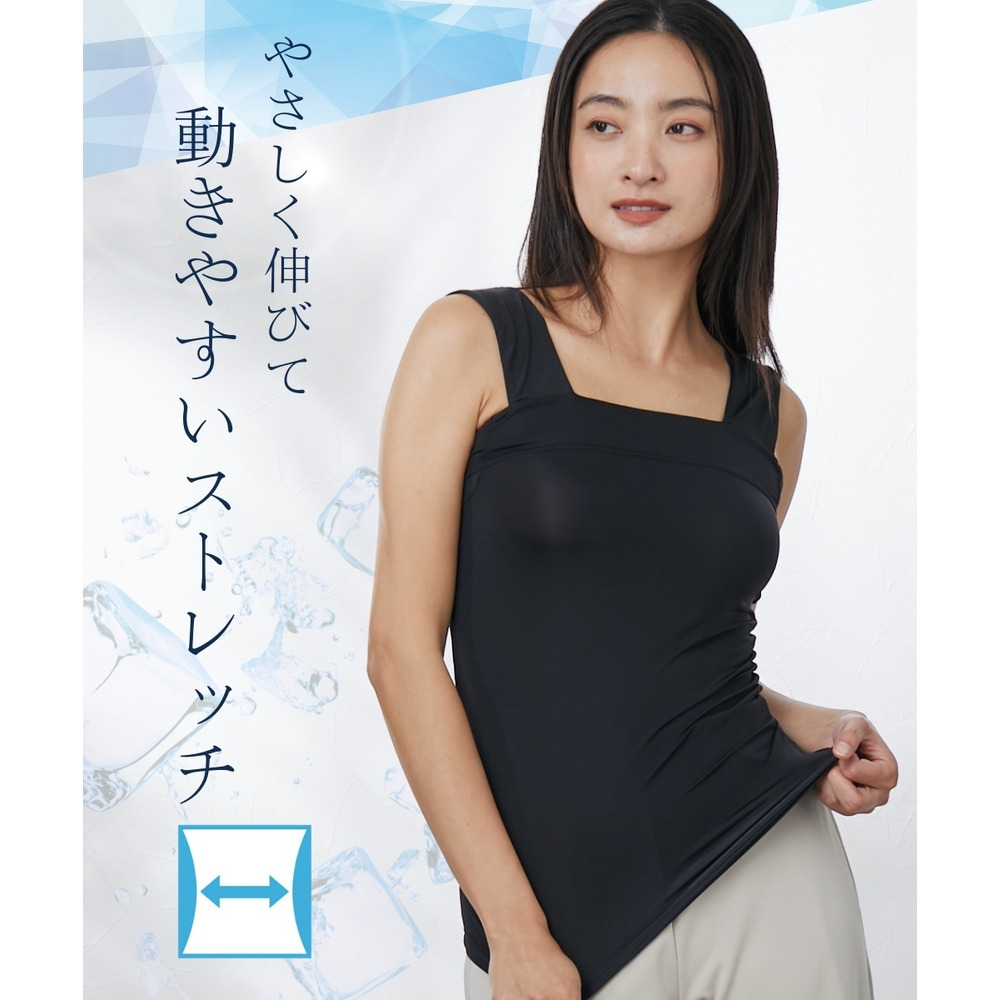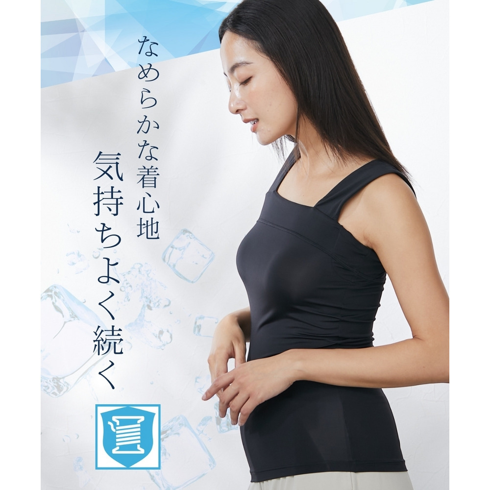 超冷感 汗取りパッド付チラ見え防止チューブトップ風タンクトップ(接触冷感・吸汗速乾・UVカット)