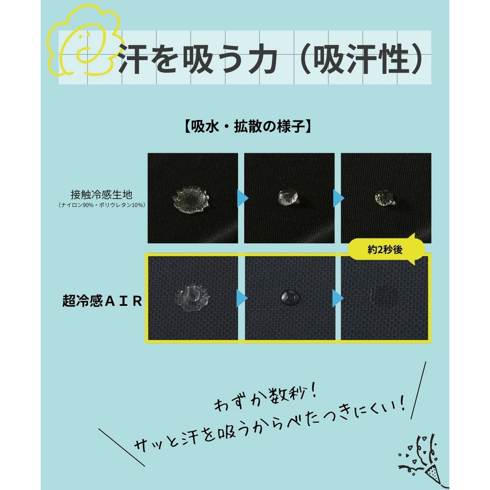超冷感シリーズの中でもメッシュ素材の【超冷感AIR】は、柔らかいメッシュ素材で通気性のある生地が特徴です。