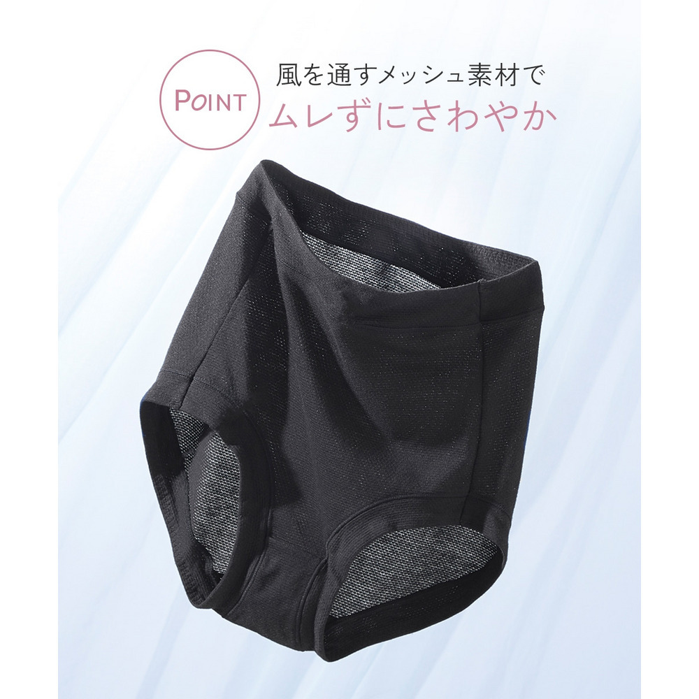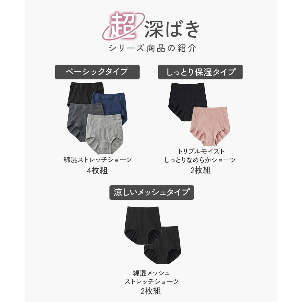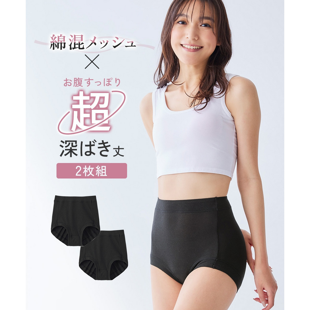 おなかすっぽり超深ばき丈 綿混メッシュ やわらかく伸びるショーツ2枚組(吸汗速乾)