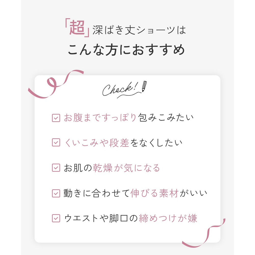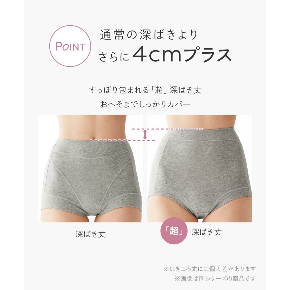 ◎通常の深ばき丈よりさらにはきこみ丈を4cmプラスし、お腹までしっかり包み込む