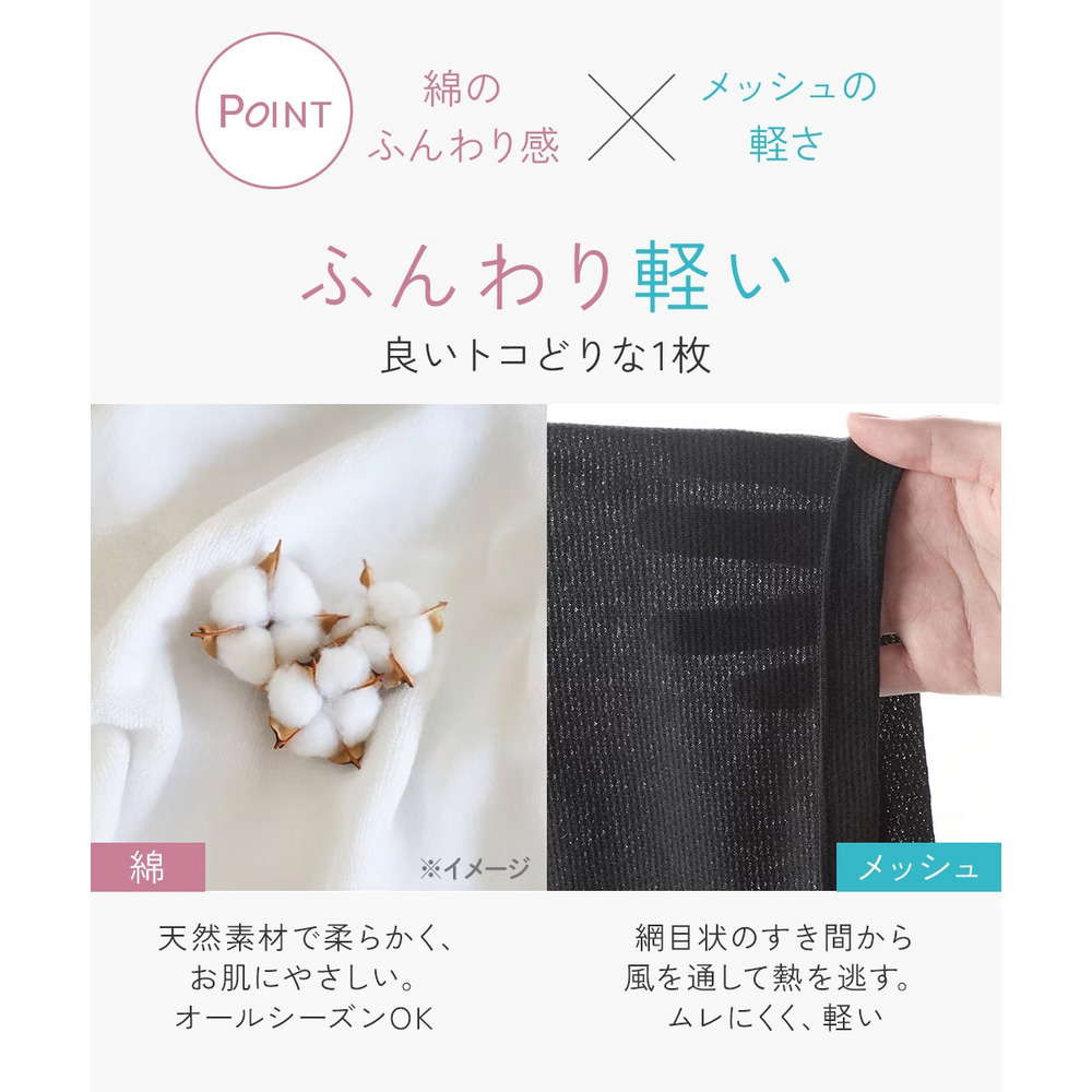 ◎綿のふんわり感×メッシュの軽さ