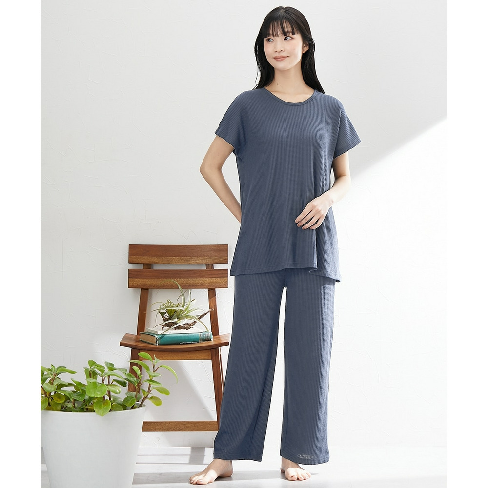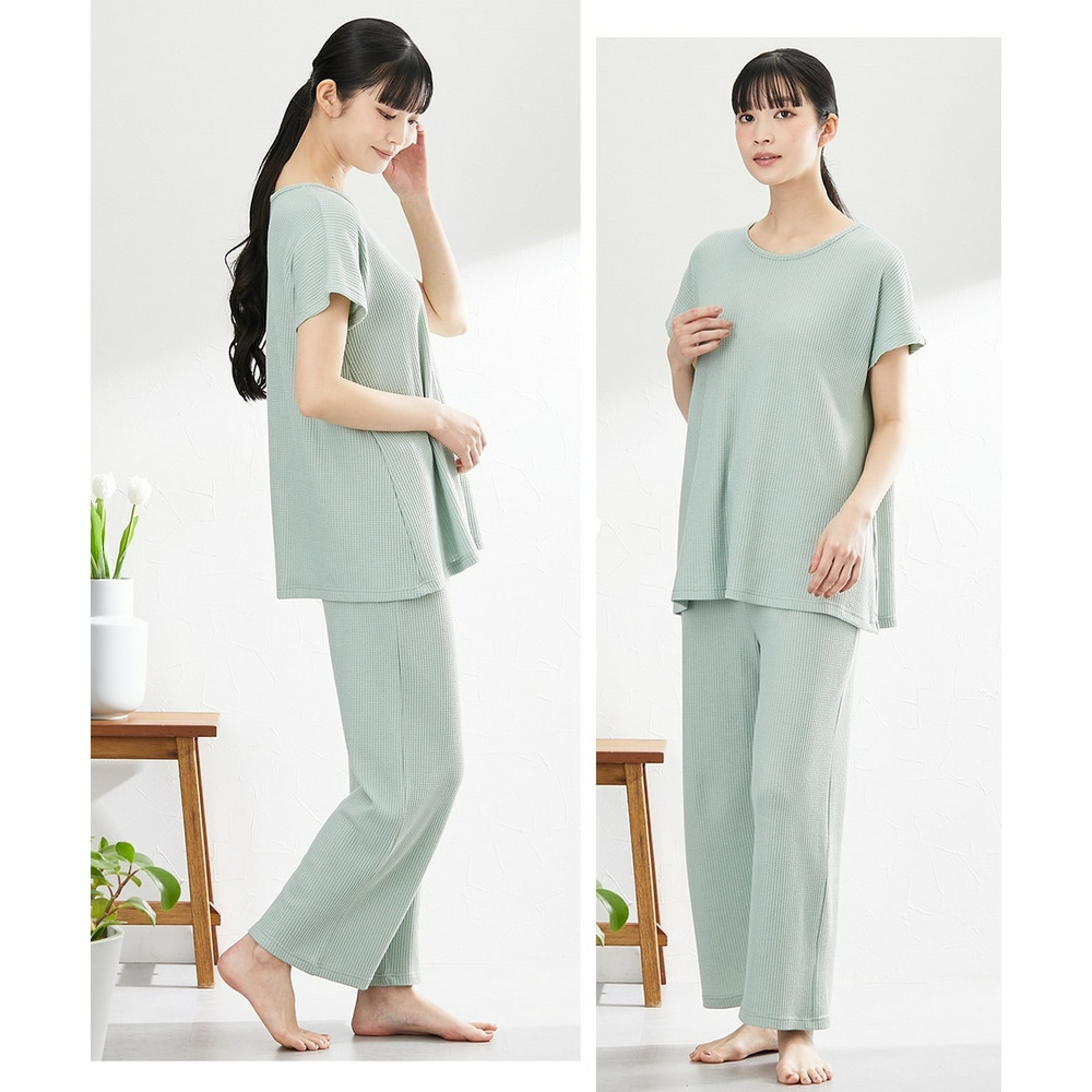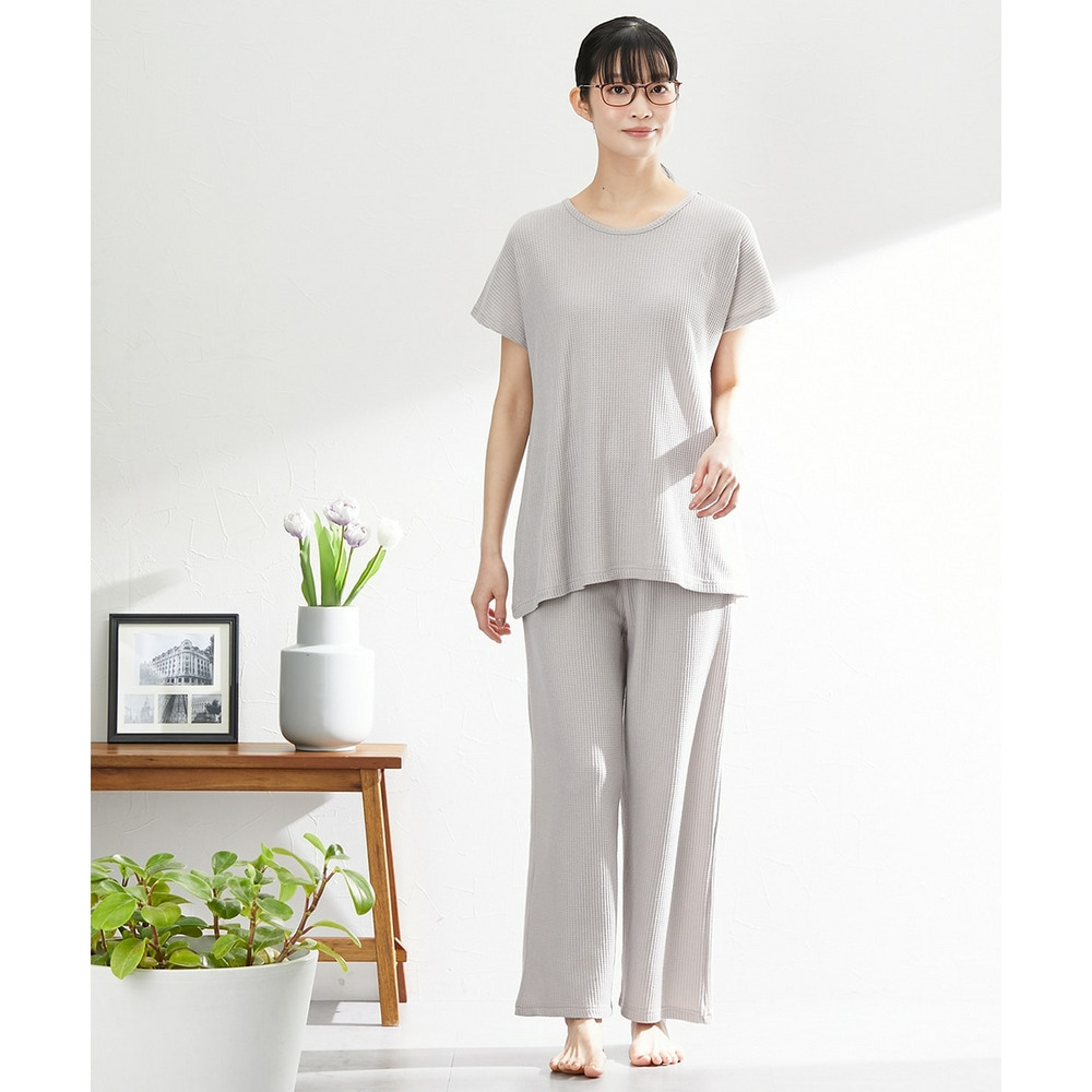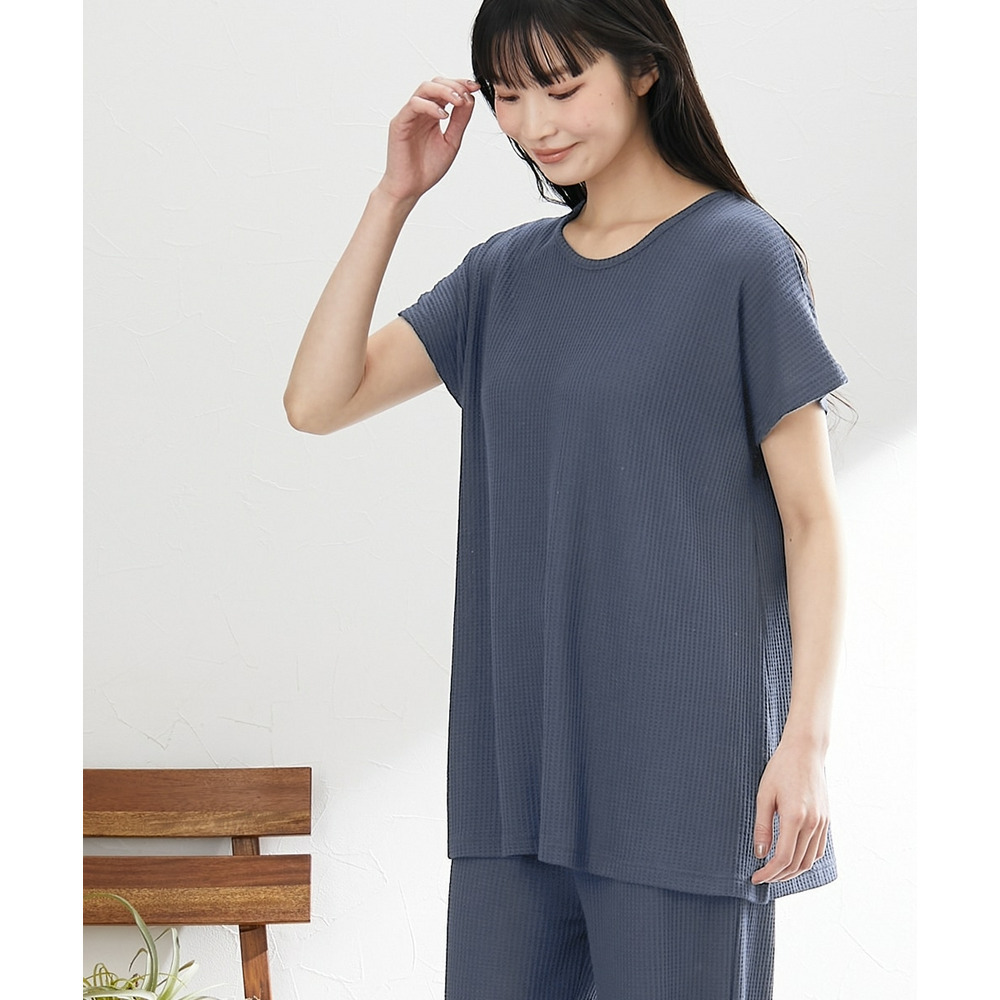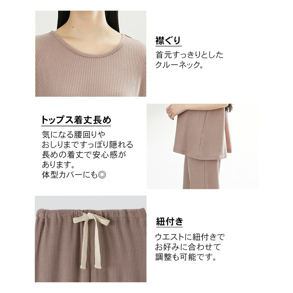 やわらかワッフル 着丈長めルームウェア上下セット