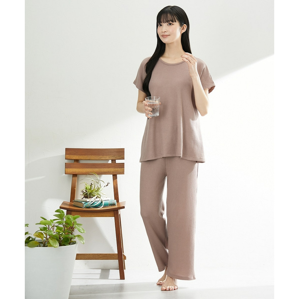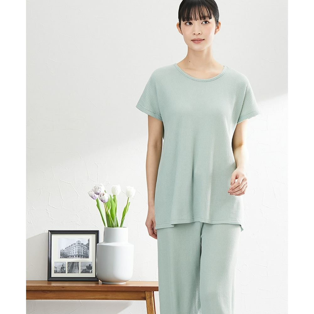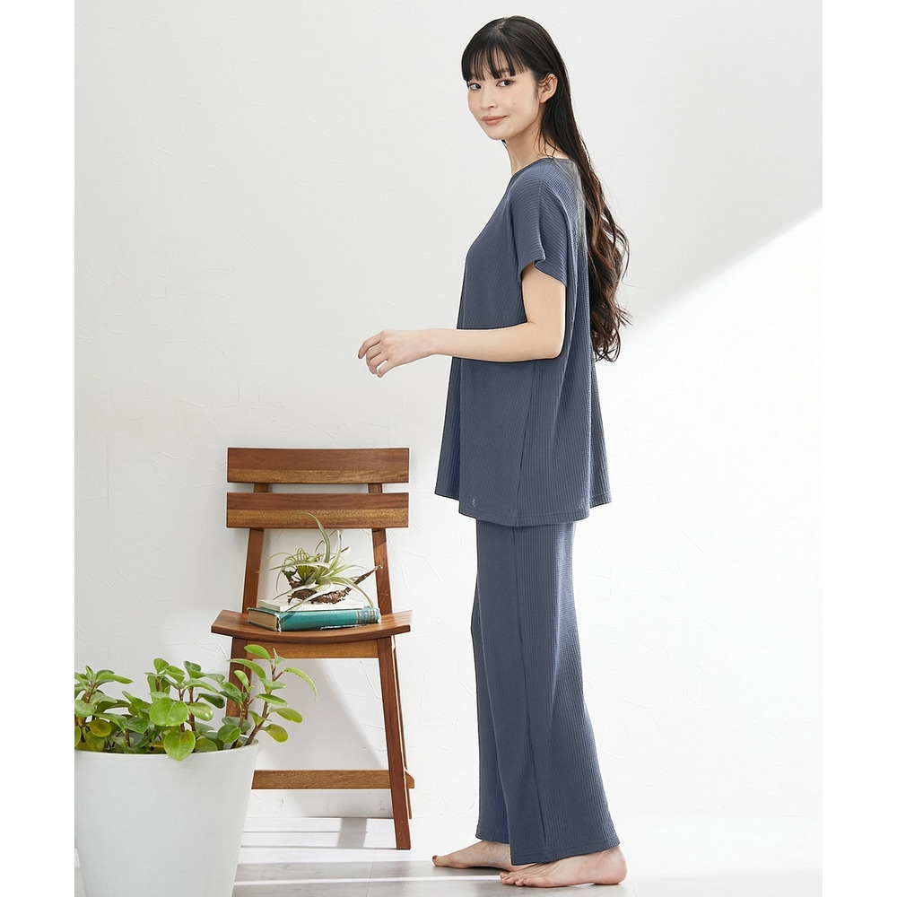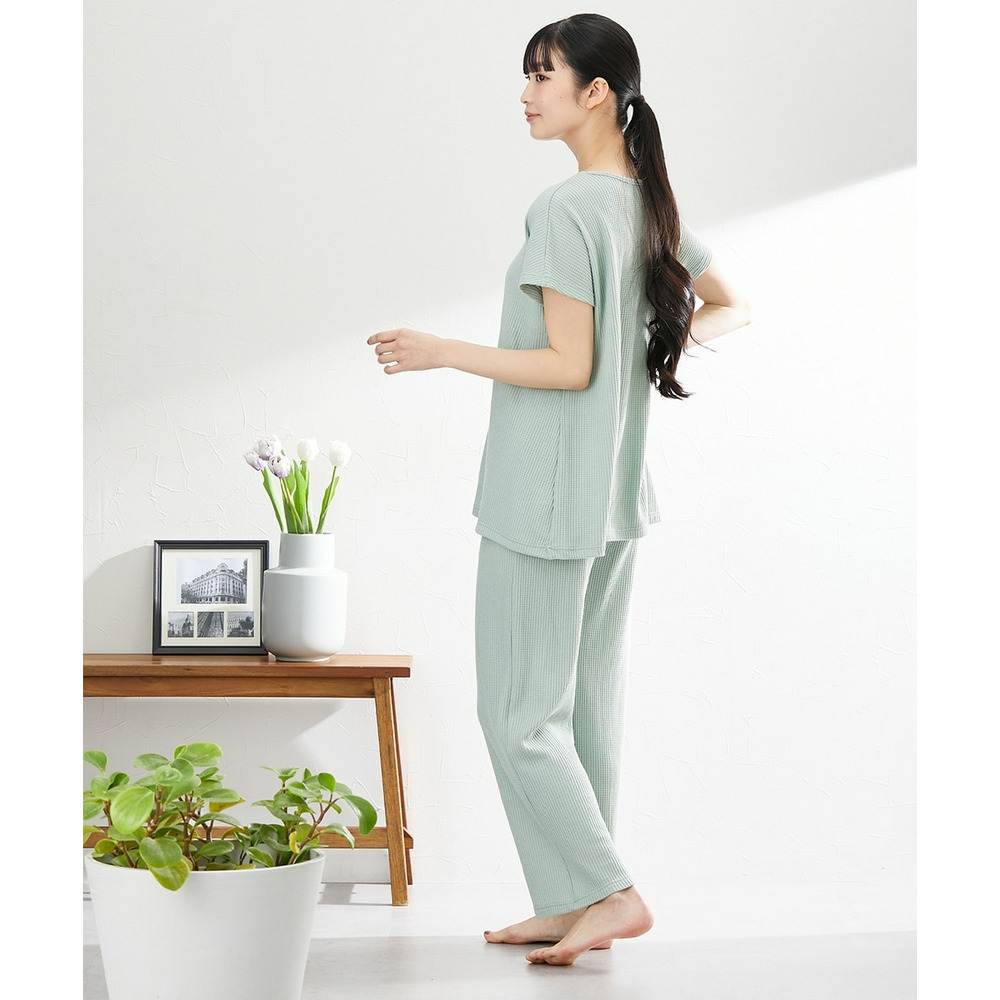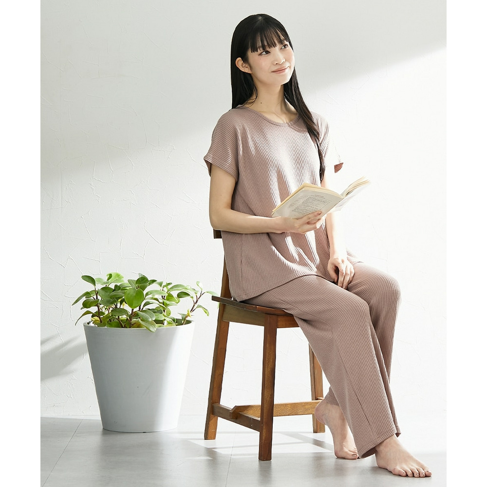 やわらかワッフル 着丈長めルームウェア上下セット