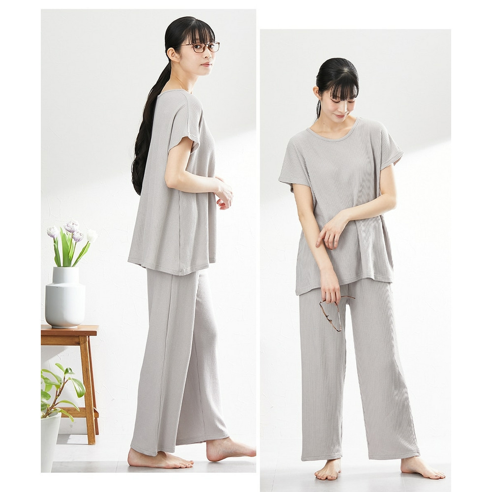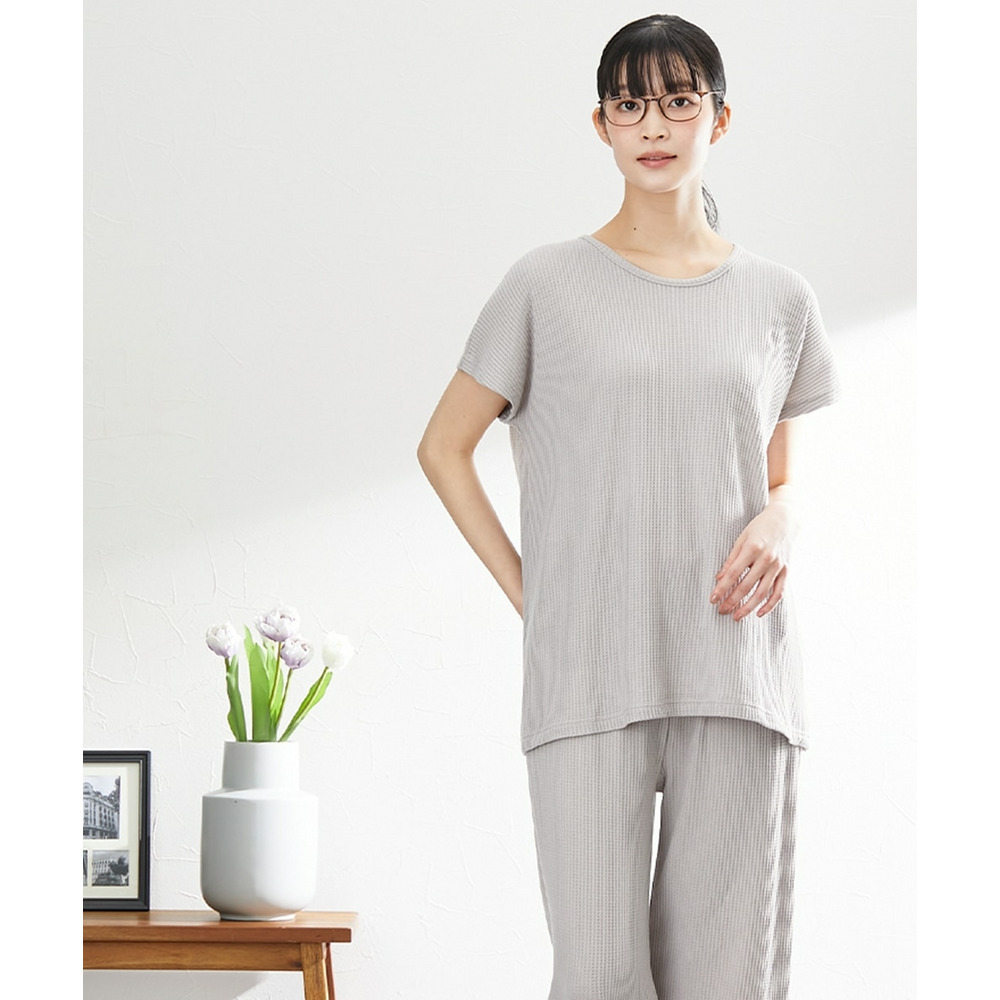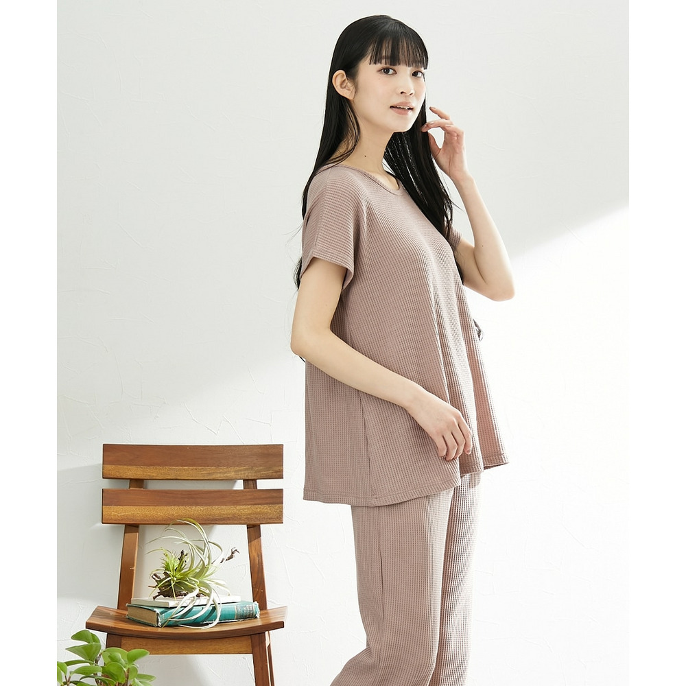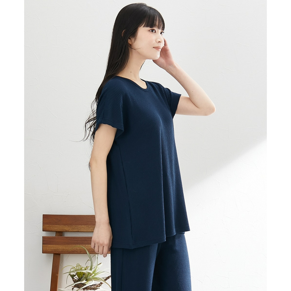 やわらかワッフル 着丈長めルームウェア上下セット