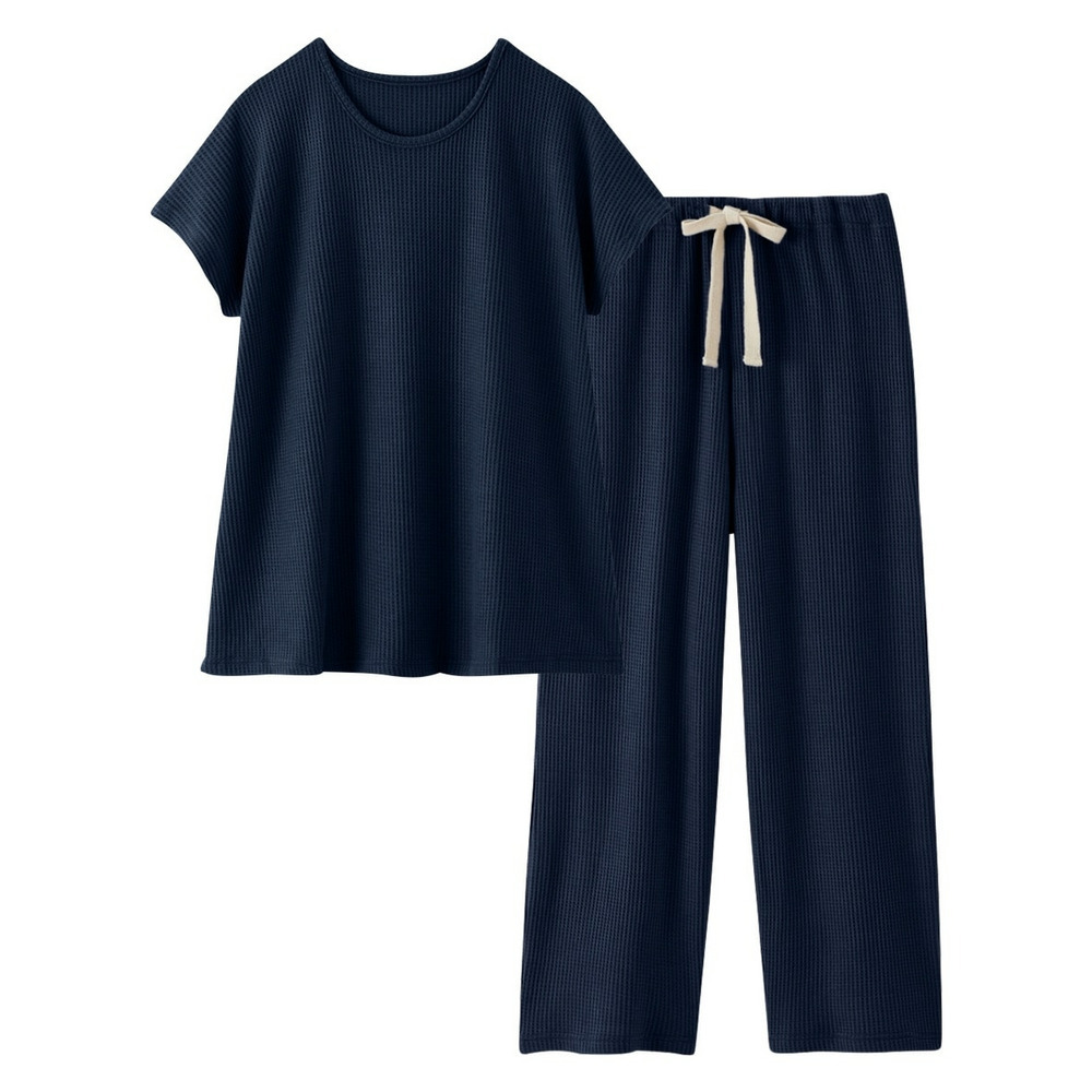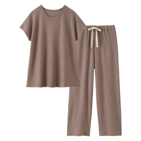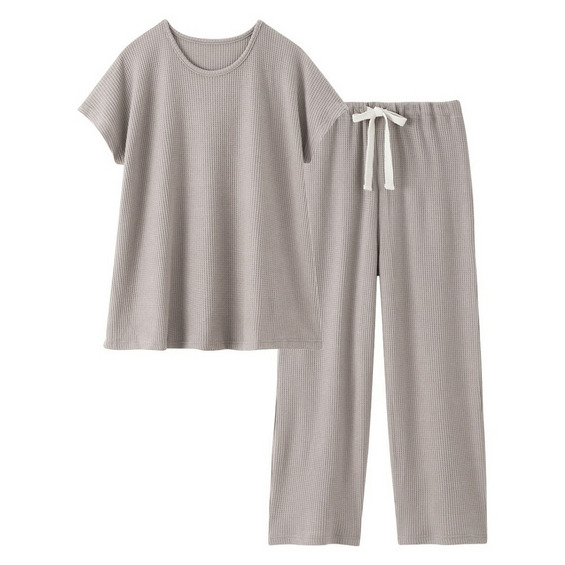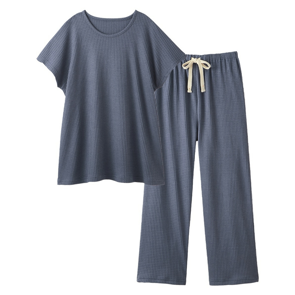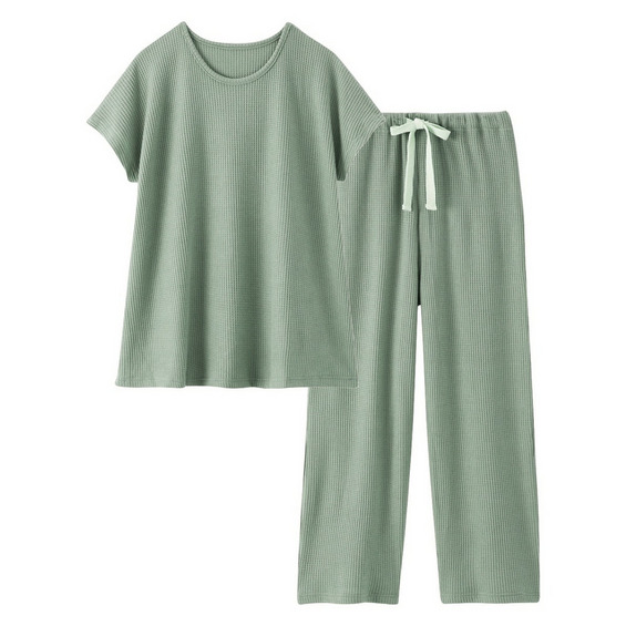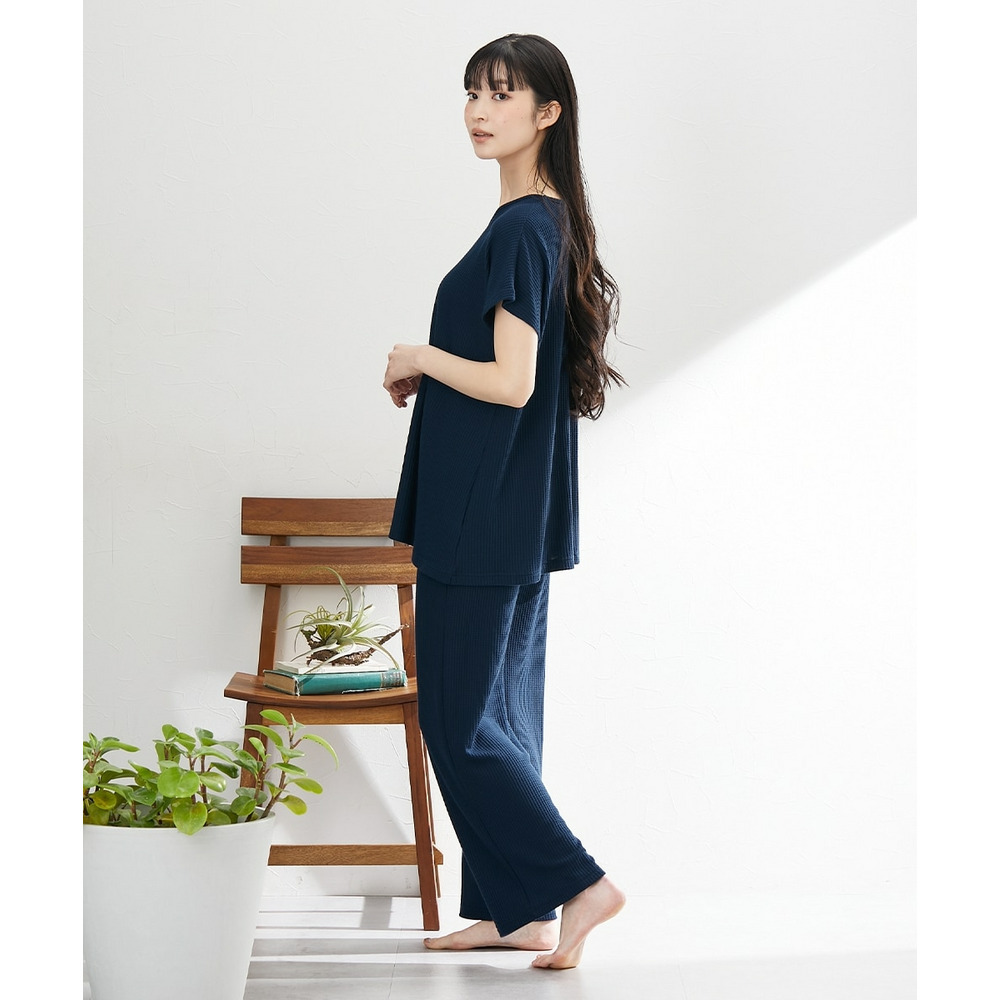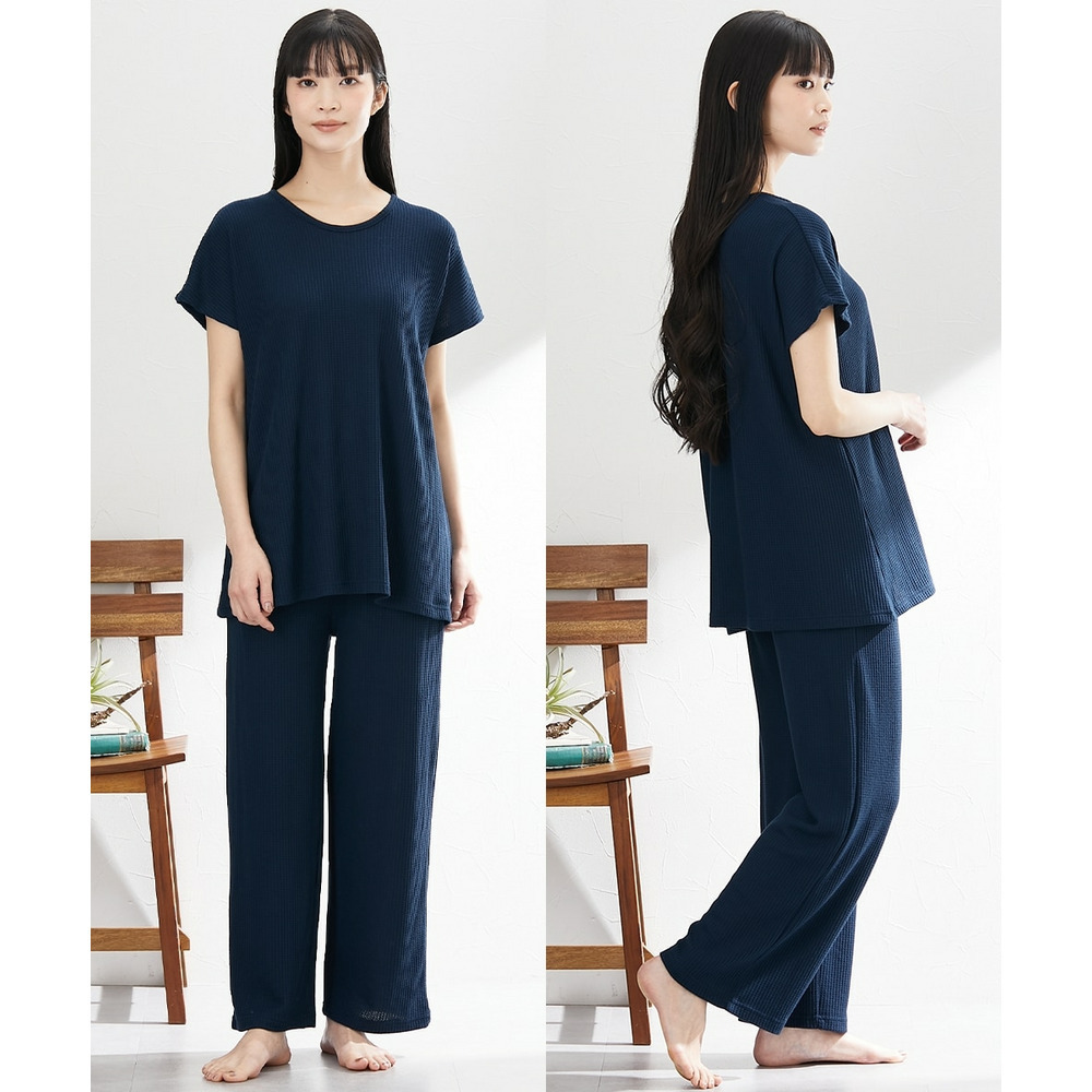 やわらかワッフル 着丈長めルームウェア上下セット