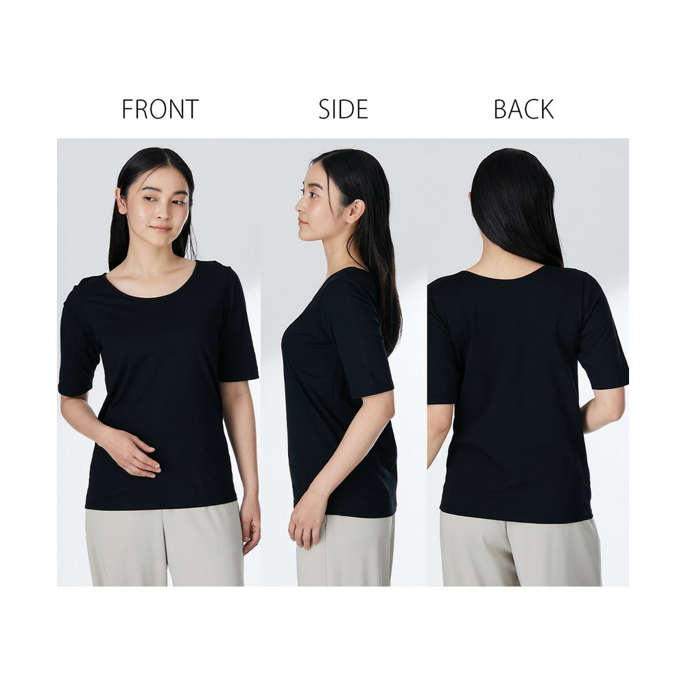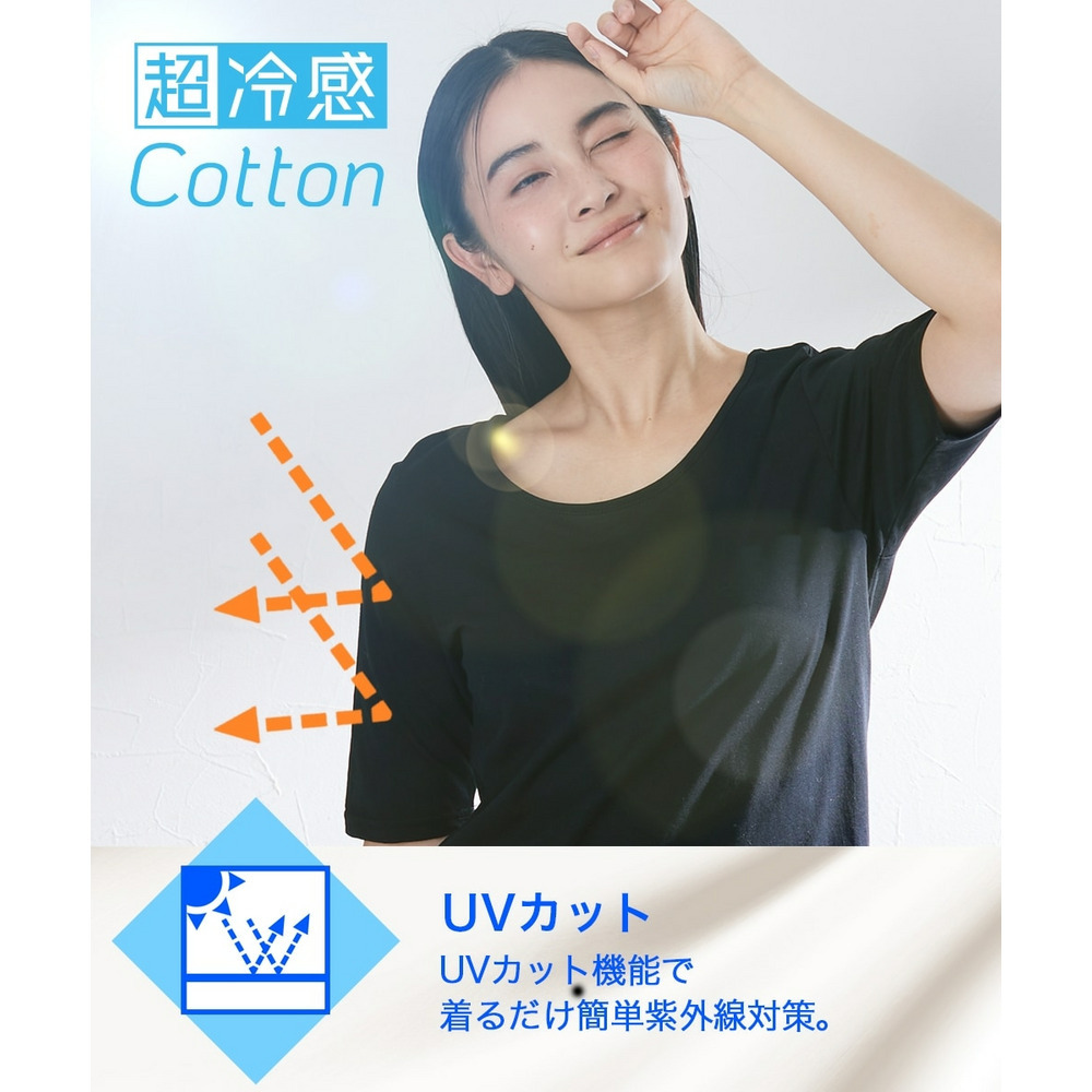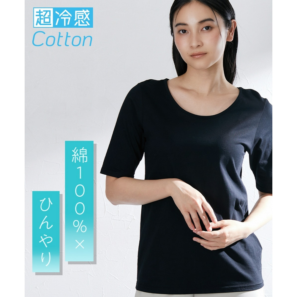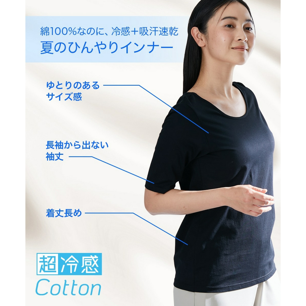 超冷感コットン 綿100%着丈長め5分袖インナー(接触冷感・吸汗速乾・UVカット)