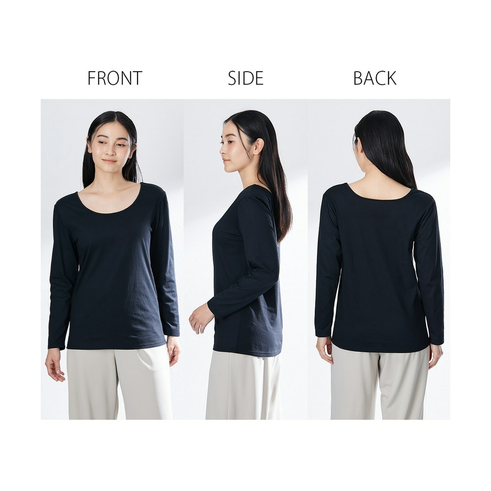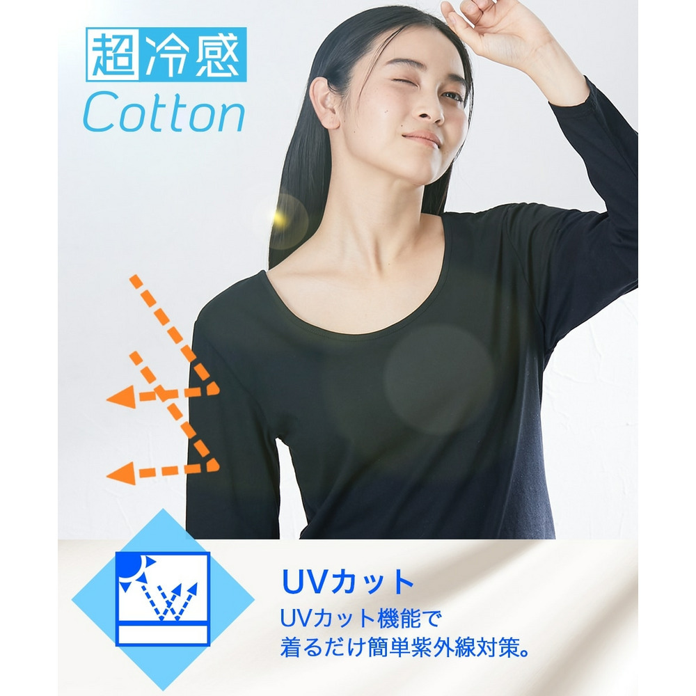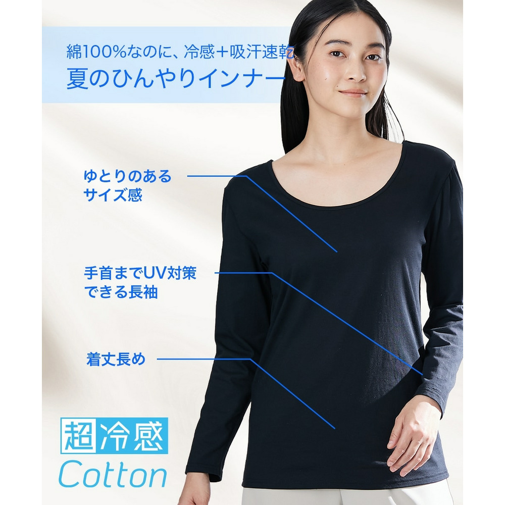 超冷感コットン 綿100%着丈長め長袖インナー(接触冷感・吸汗速乾・UVカット)
