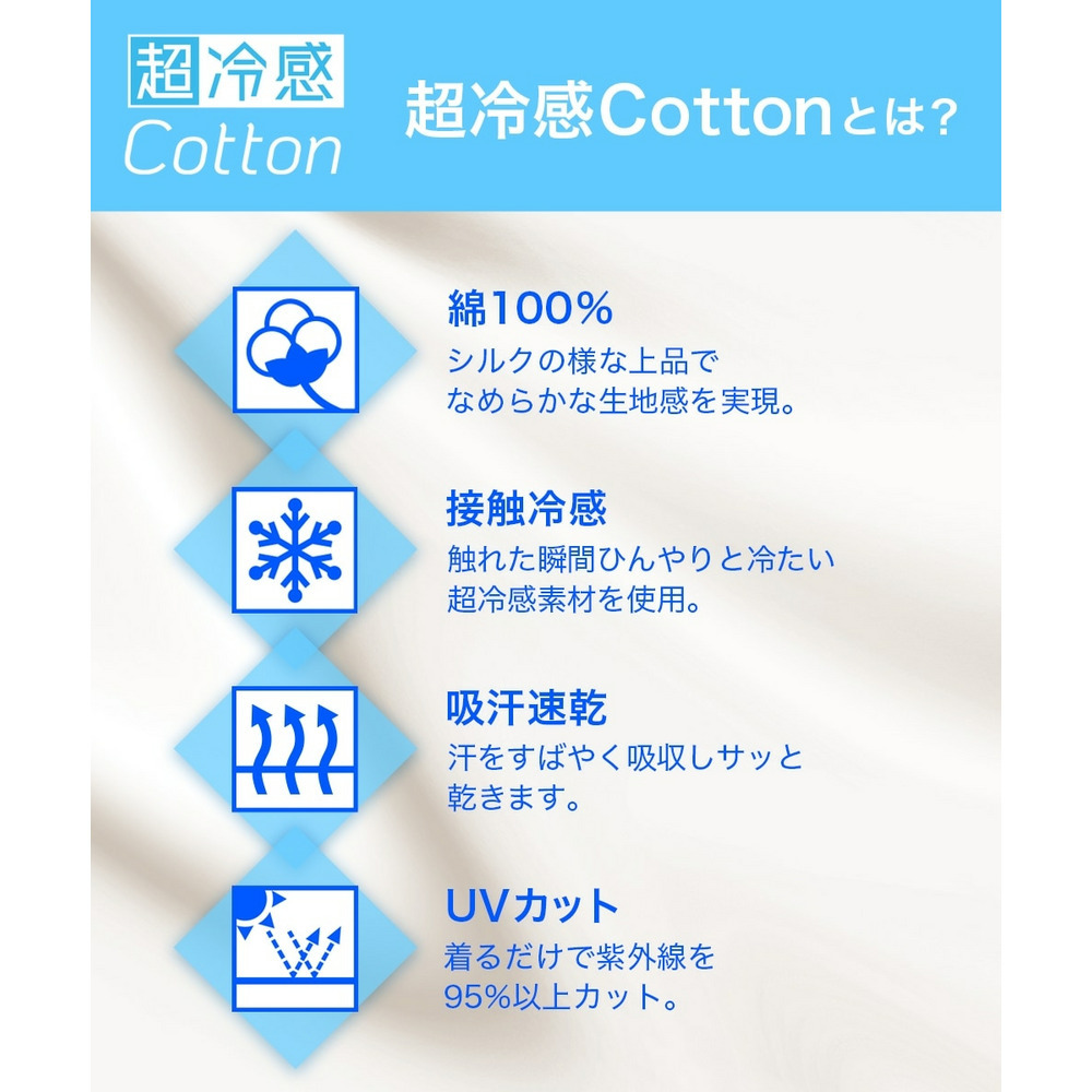 超冷感シリーズの中でも天然素材の【超冷感Cotton】は、綿100%素材のシルケット加工でなめらかな生地が特徴です。