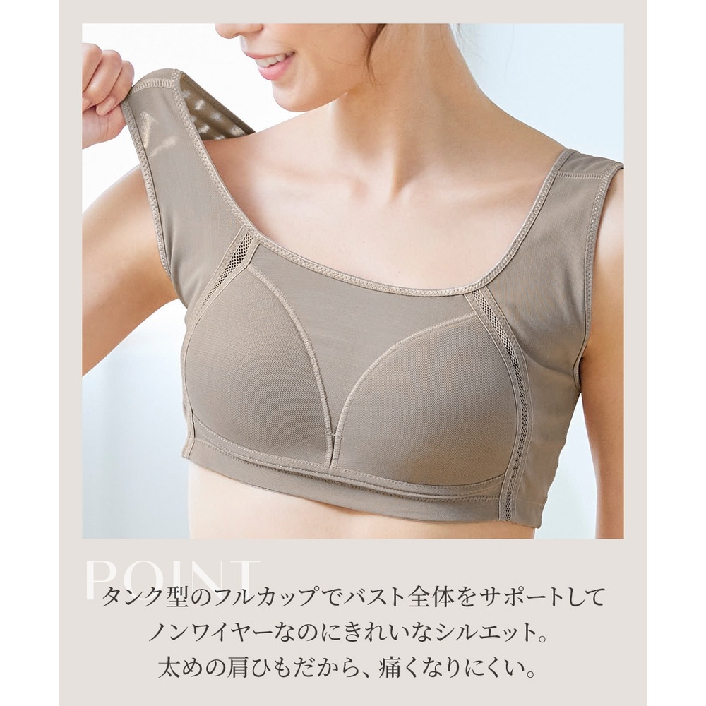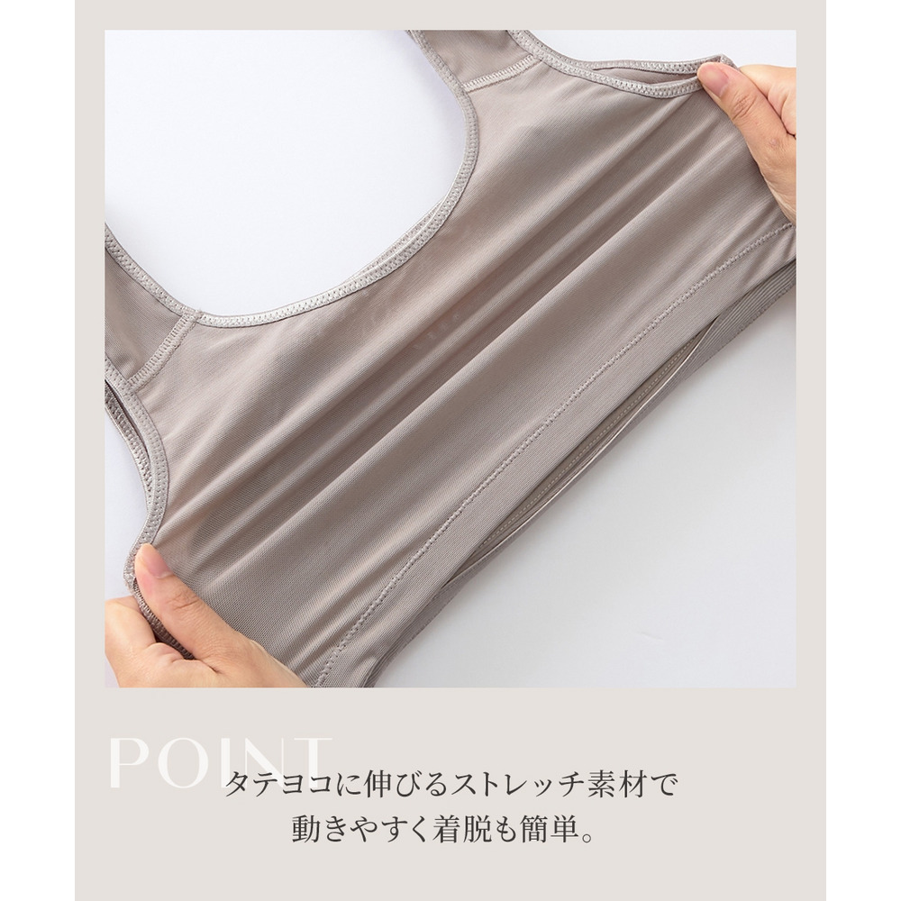 ・バスト全体を包み込むタンク型なので、背中や脇に流れたお肉をしっかりと集め、スッキリとした印象に