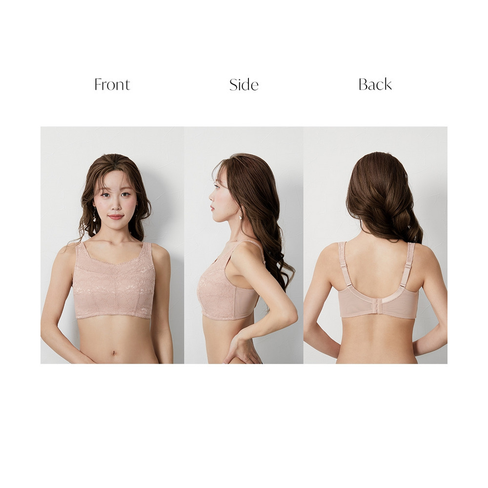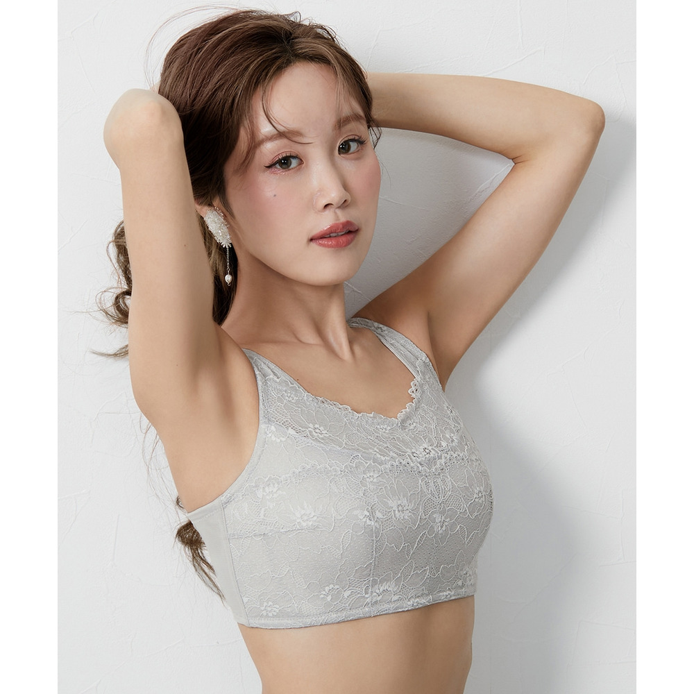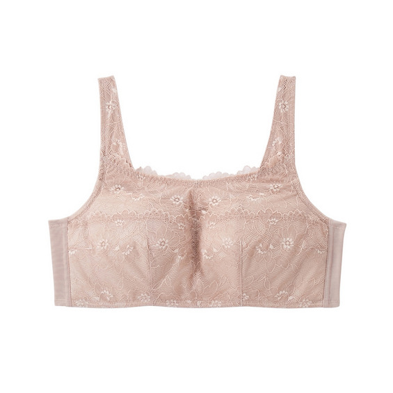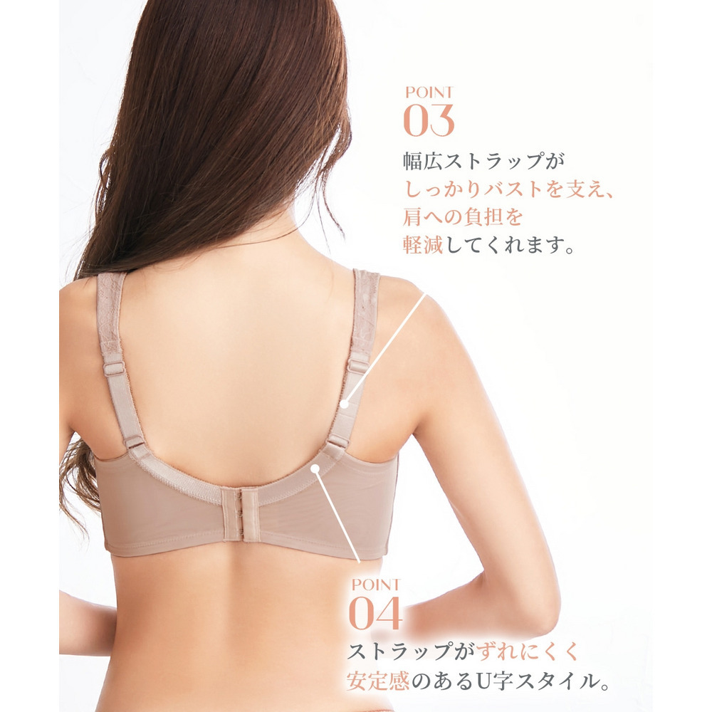 【大きい胸】胸を小さく見せる ノンワイヤー ブラジャー 谷間カバー レースデザイン(DEFGHIJKカップ)