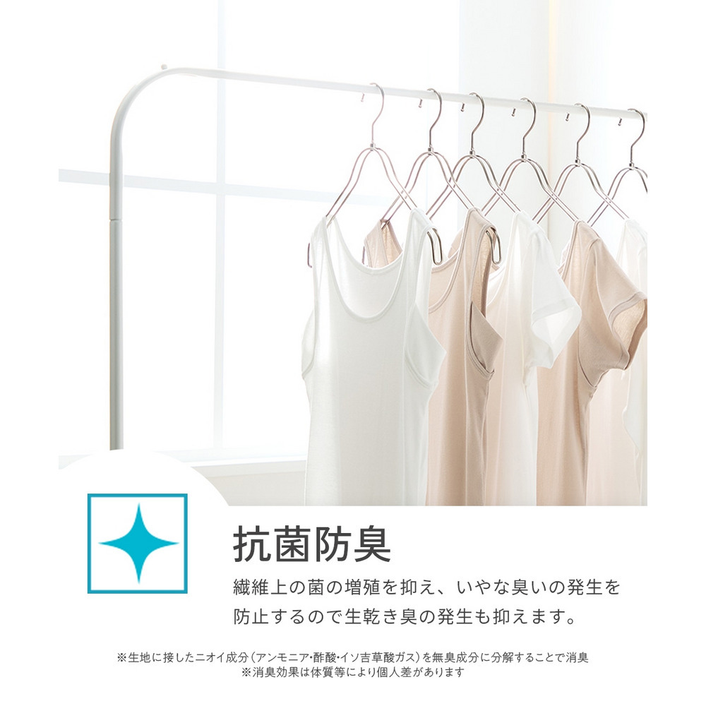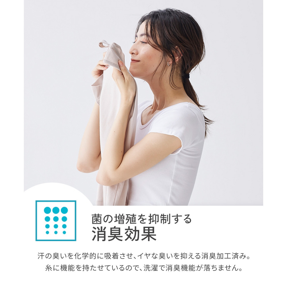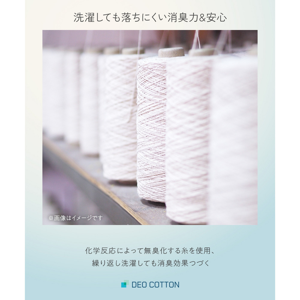 改質し、消臭因子を持った原綿を紡績した糸を使用しているので、洗濯しても効果が続く。