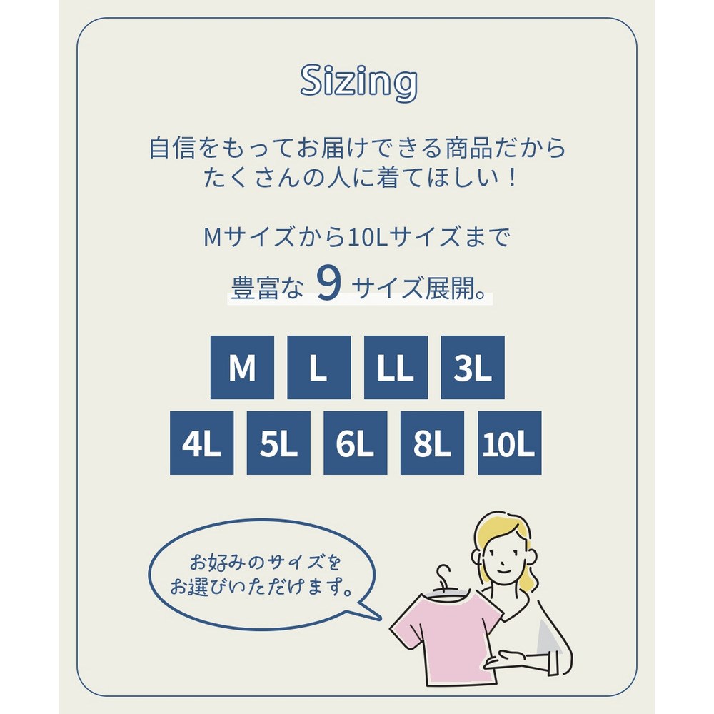 襟ぐり・腕・バスト・ヒップ・股ぐりなど、全体的にゆとりを持たせた設計にすることで