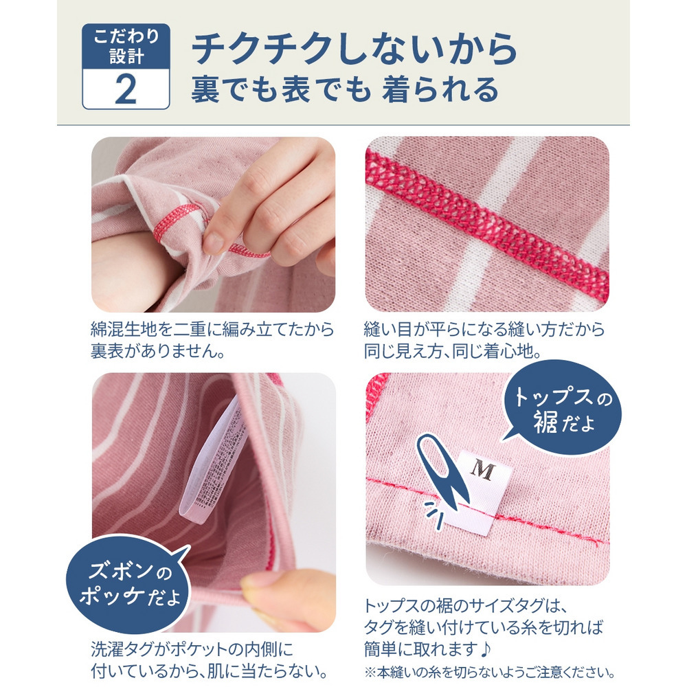 縫い目が平らになるフラットシーマだから凹凸がなく、チクチク感が気になりにくい◎