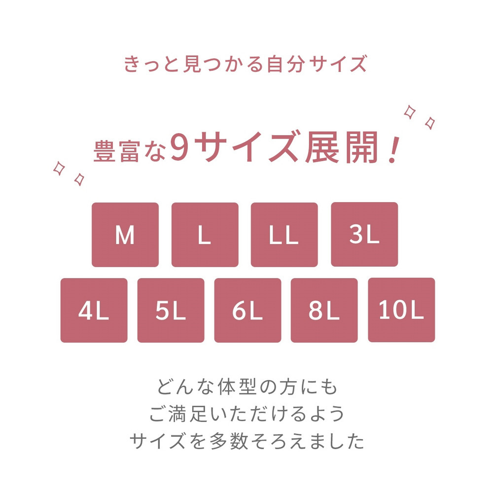 | サイズ表記 | L | LL | 3L | 4L | 5L | 6L | 8L | 10L |