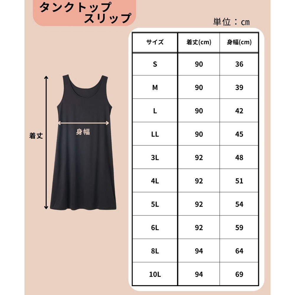 オールシーズン使えるベーシックなタンクトップスリップです。