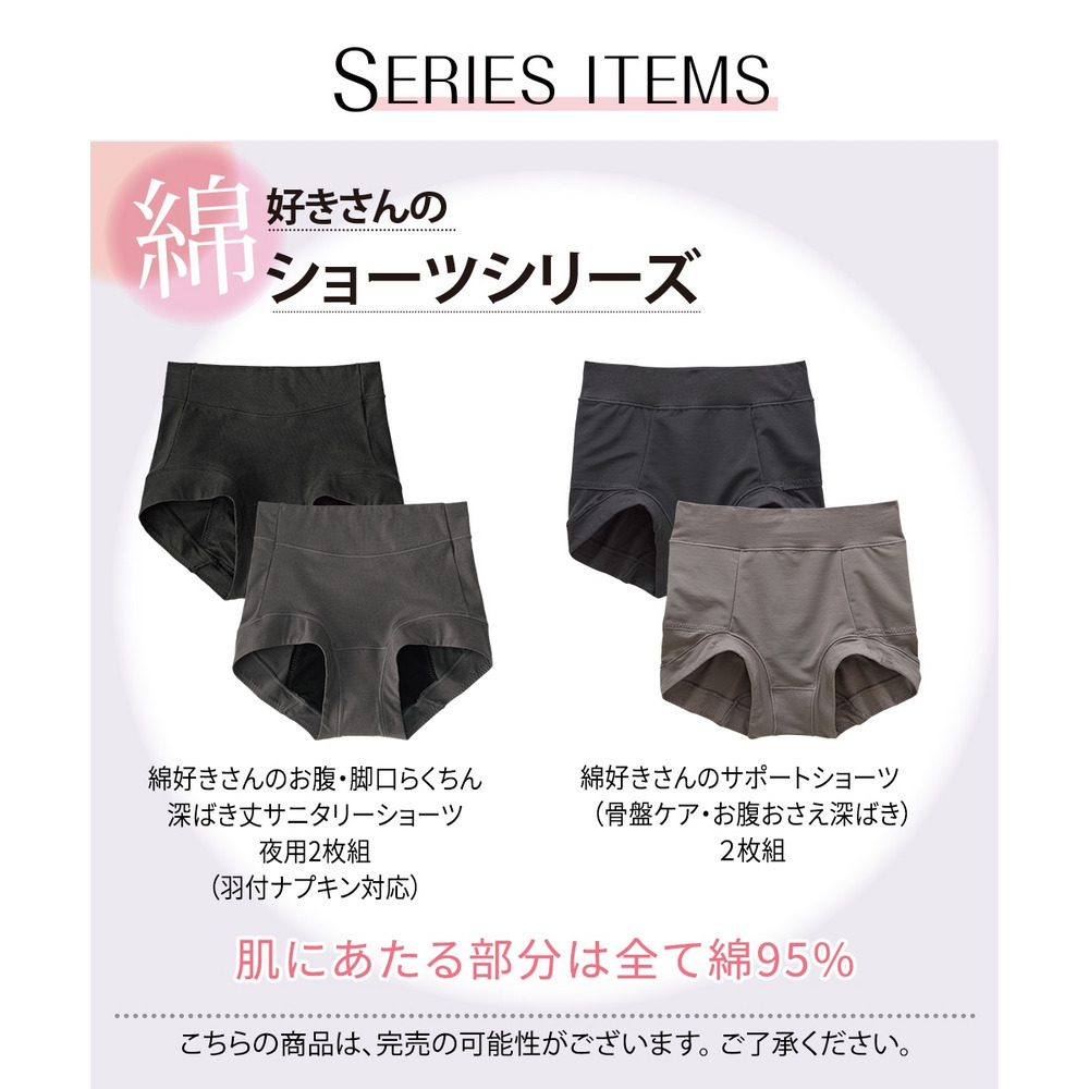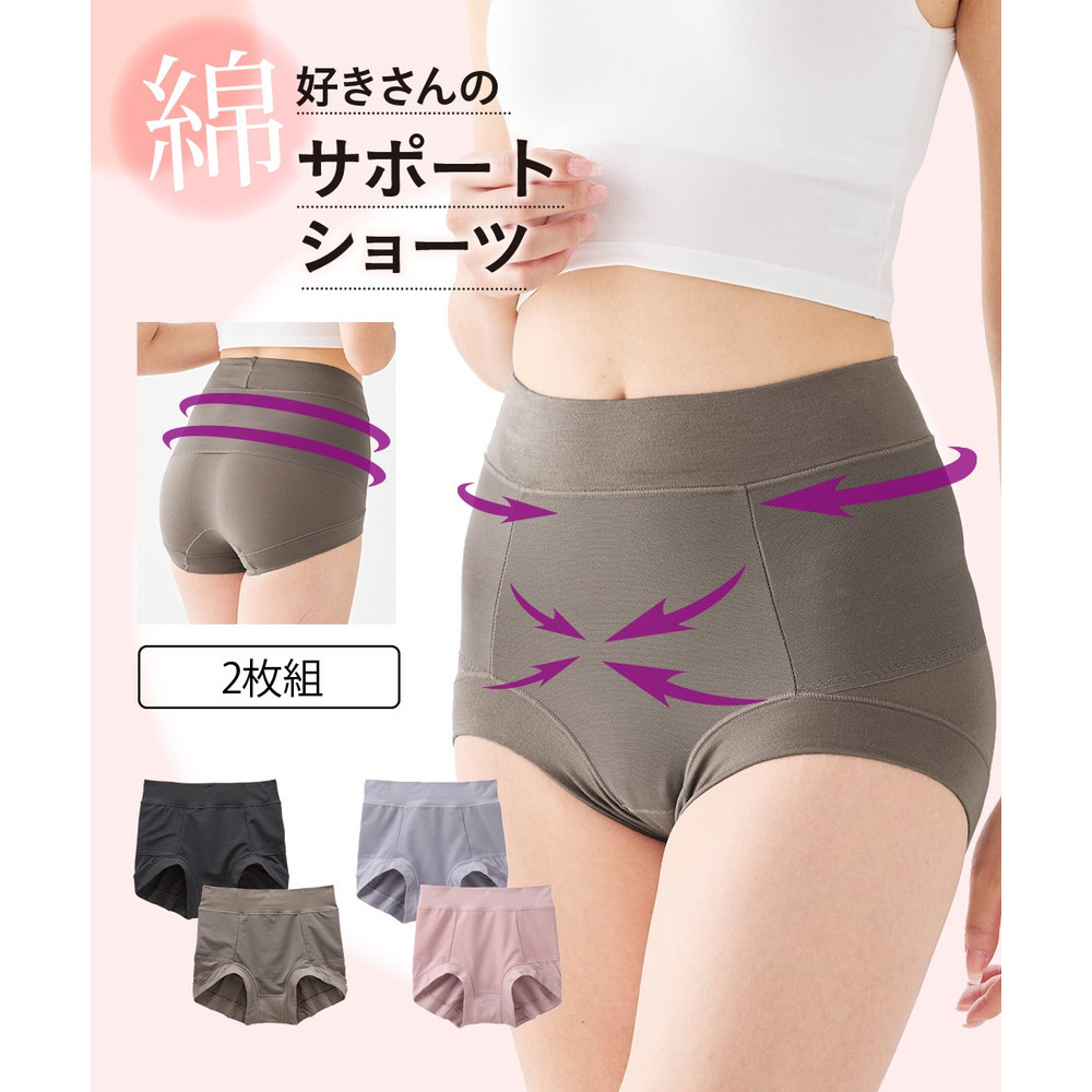 • 綿好きさんのサポートショーツ (骨盤周りケア・お腹おさえ深ばき丈)2枚組2