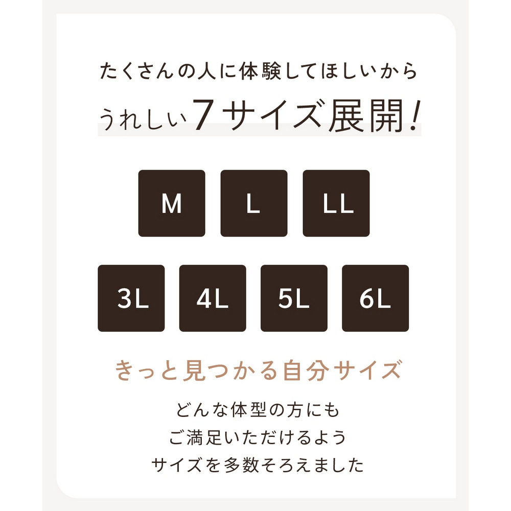 Mサイズから6Lサイズまで、どんな体型の方にもご満足いただけるよう、サイズを多数揃えました。