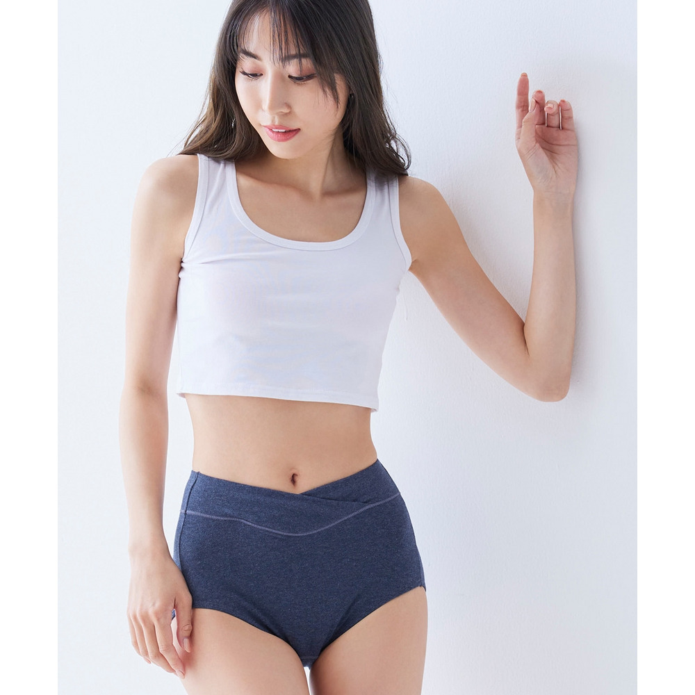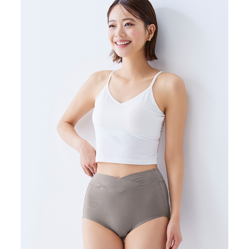 ぽっこりお腹もおへそ下まで包み込む(※) はきこみ丈深め。
