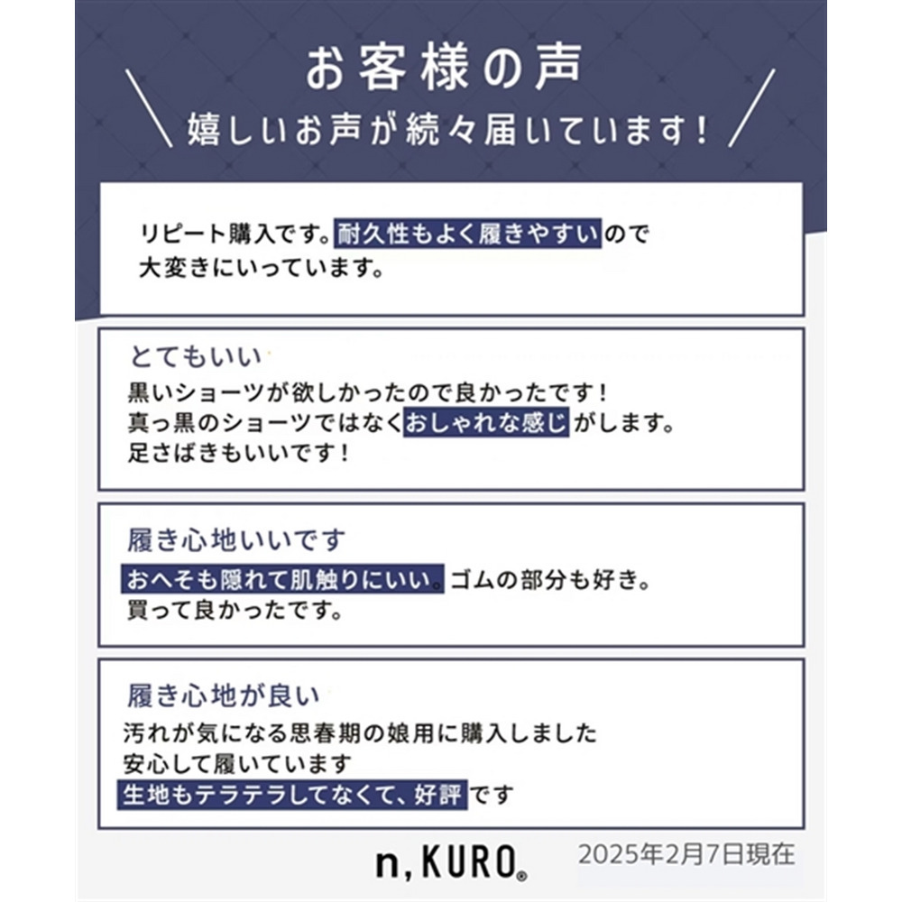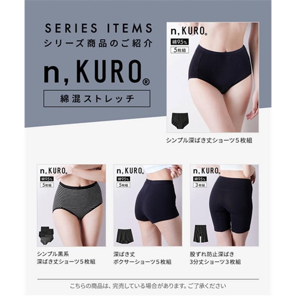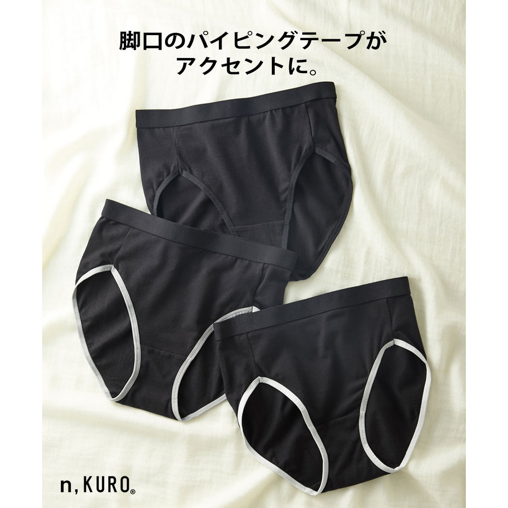 n,KURO 綿混ストレッチ 脚口配色テープショーツ3枚組(サイズ別はきこみ丈)