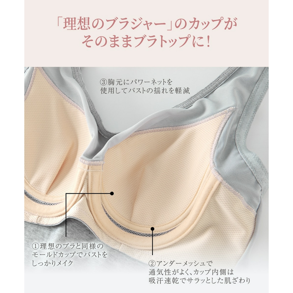 ・アンダーメッシュで通気性が良い・カップ内側は吸汗速乾のメッシュ生地で、汗をかいても肌離れが良く快適