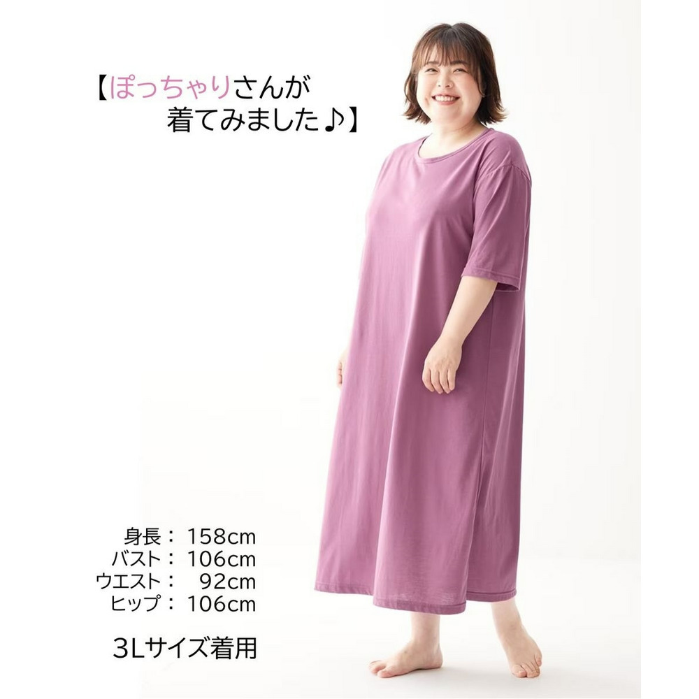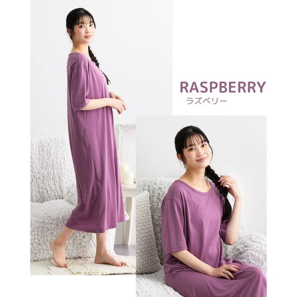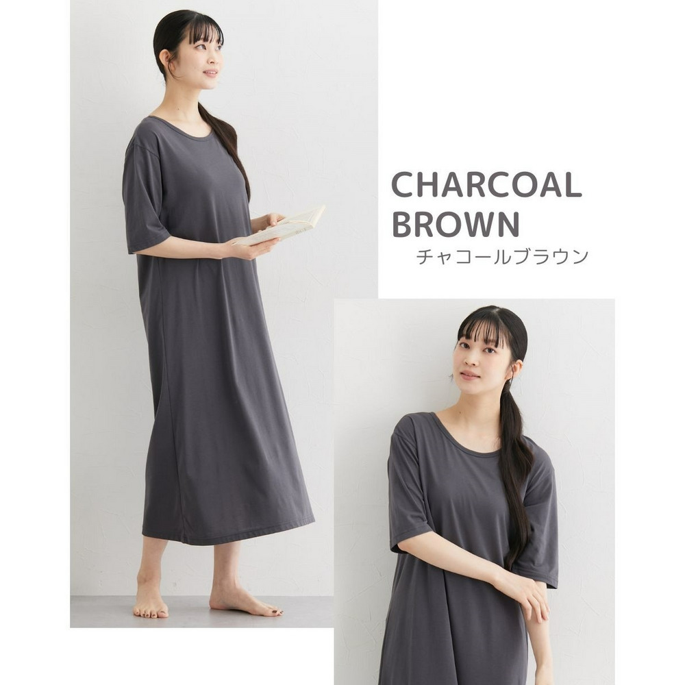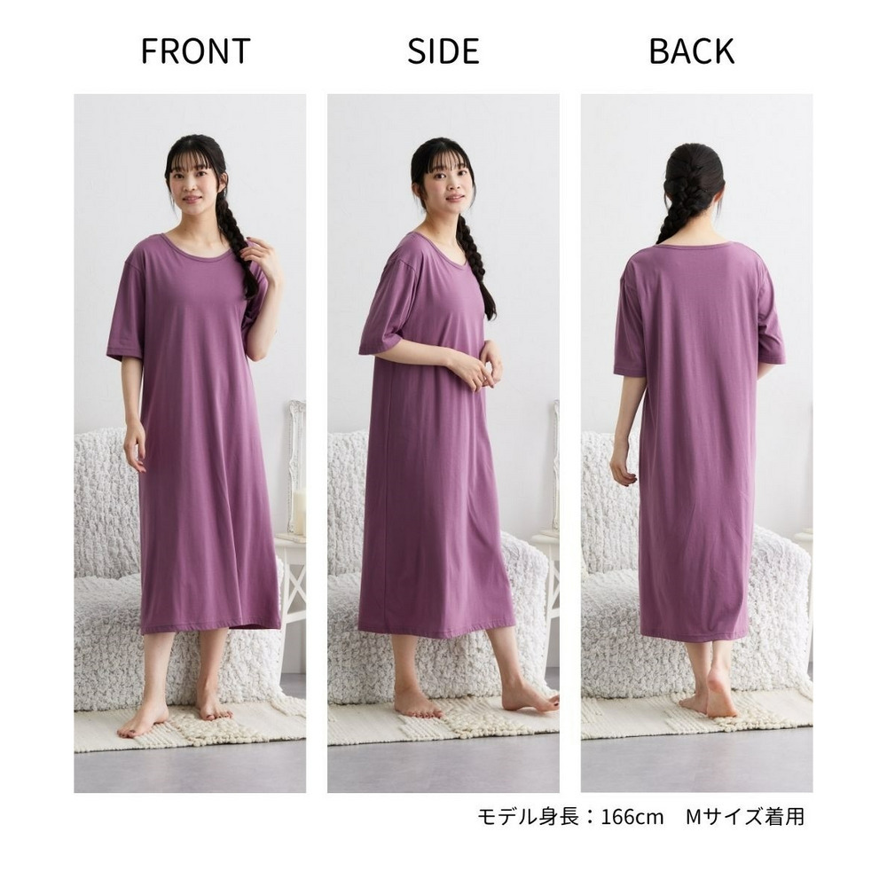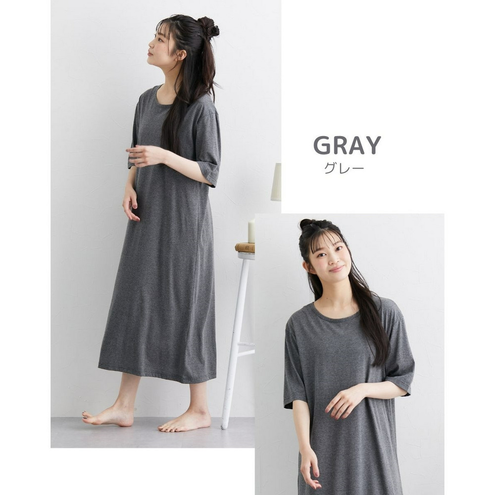 綿混のやわらかなスムース素材で着用しやすいルームワンピース。