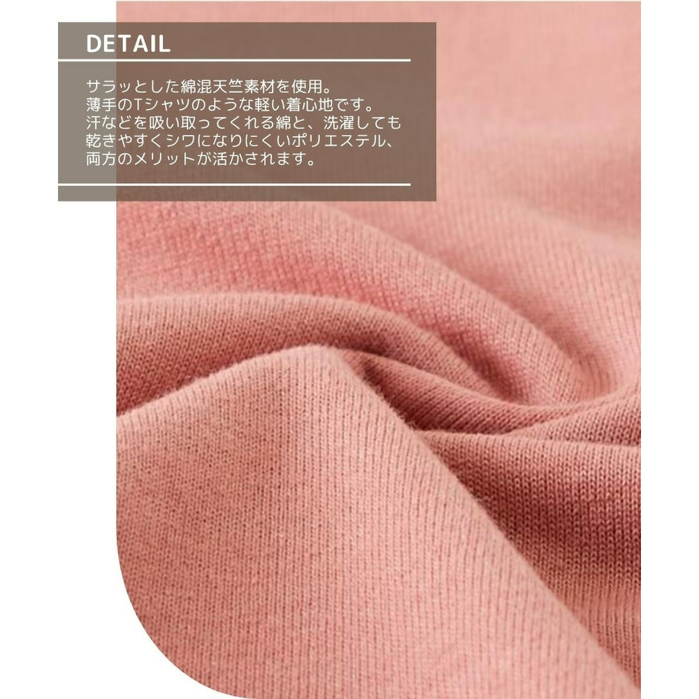 薄手のTシャツのようで着用しやすいやわらかな綿混天竺素材。