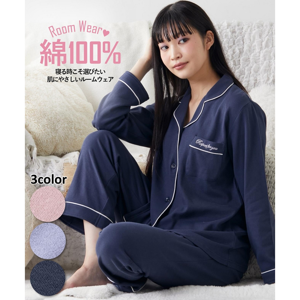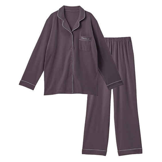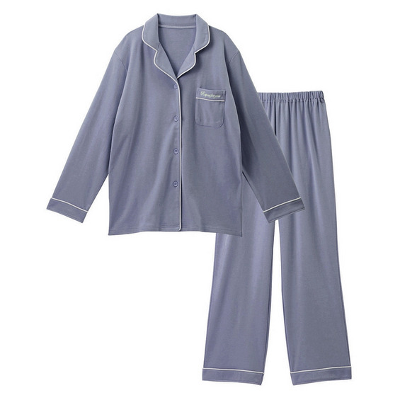パイピングのアクセントが効いたパジャマは、シンプルながらも大人のおしゃれ感が光るアイテム。