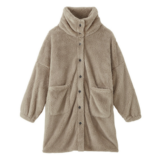 ふわぬくマイクロファー首あったか前開きルームガウン