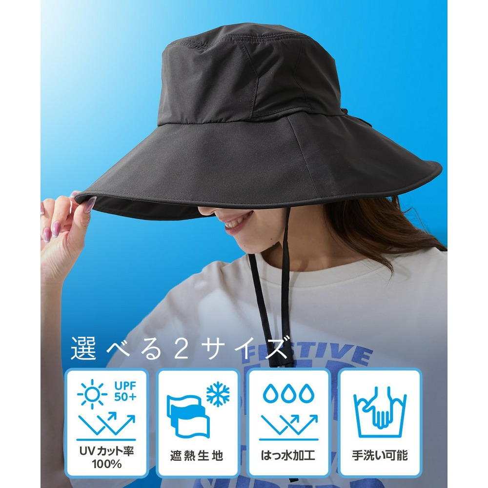 UV遮熱はっ水日傘素材洗えるパッカブルつばがなが~いハット(選べる2サイズ)